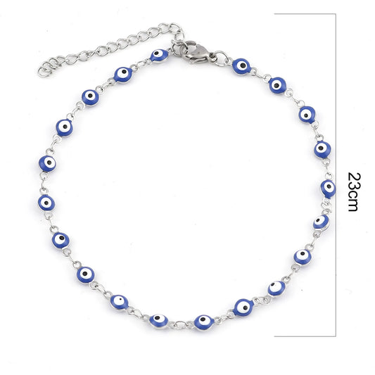8 Styles! Colorful Silver Or Gold Stainless Steel Anklet Enamel Round Evil Eye Anklets Bracelets For Women