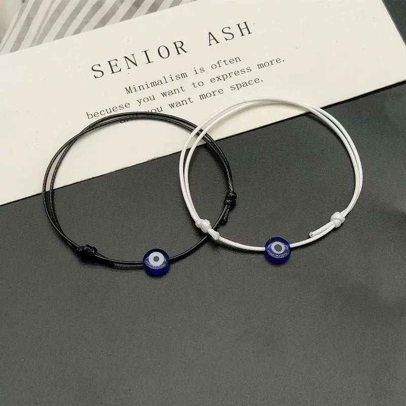 2 Pack of Flat Evil Eye Woven Mens Unisex Bracelet Adjustable Black Blue White Red String Bracelets