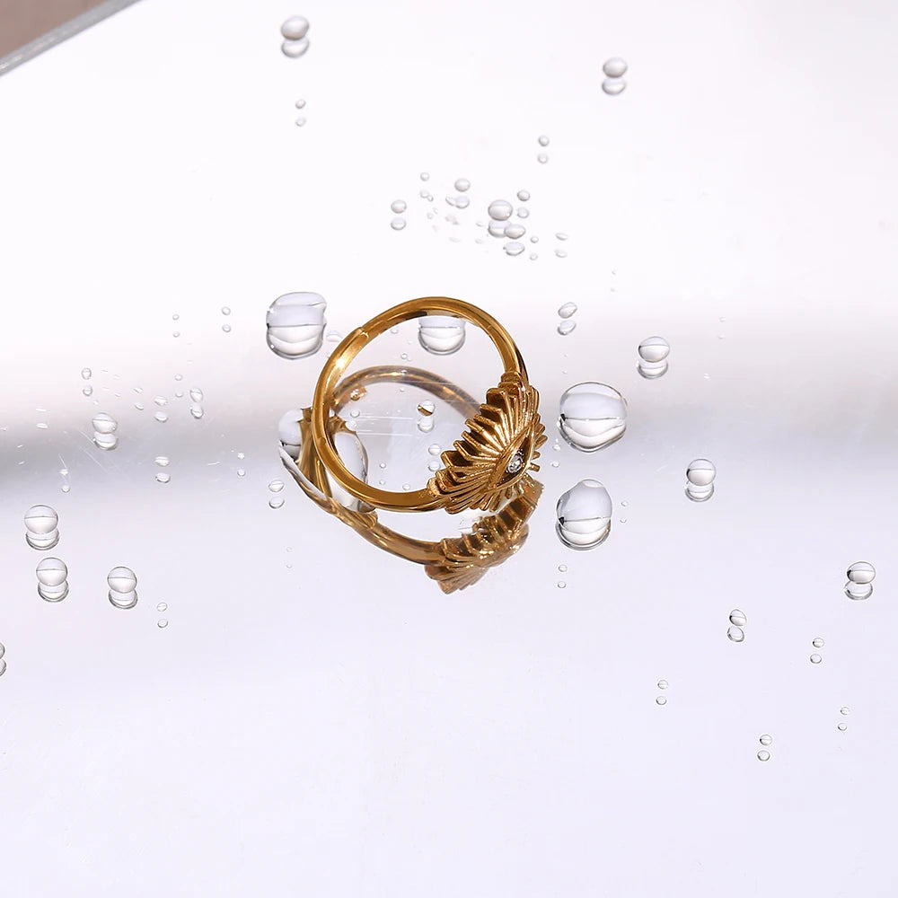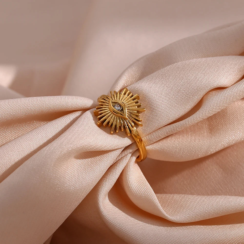 Complete your look with this matching set of a necklace and ring. Crafted from high-quality stainless steel and finished with an elegant gold plating, both pieces feature stunning zircon accents in the shape of an evil eye. These rings are made of durable and stylish stainless steel, and each one measures 13mm in width. Sold separately, you must add both items to your cart to purchase the matching set. Sizing per pictures