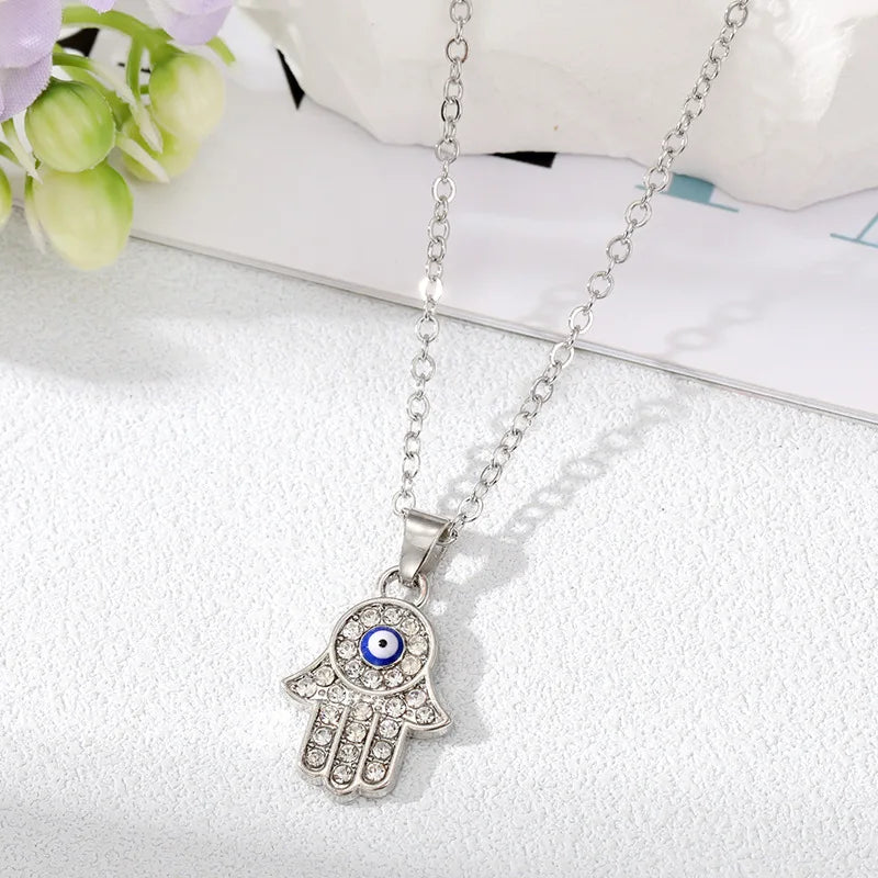 Silver or Gold Option! Evil Eye Pendant Necklace for Women Turkish Eye Fatima Hand Blue Eye Accent
