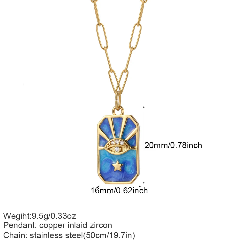 Blue Boho Tag Evil Eye Necklace for Women Pendant Long Stainless Steel Chain