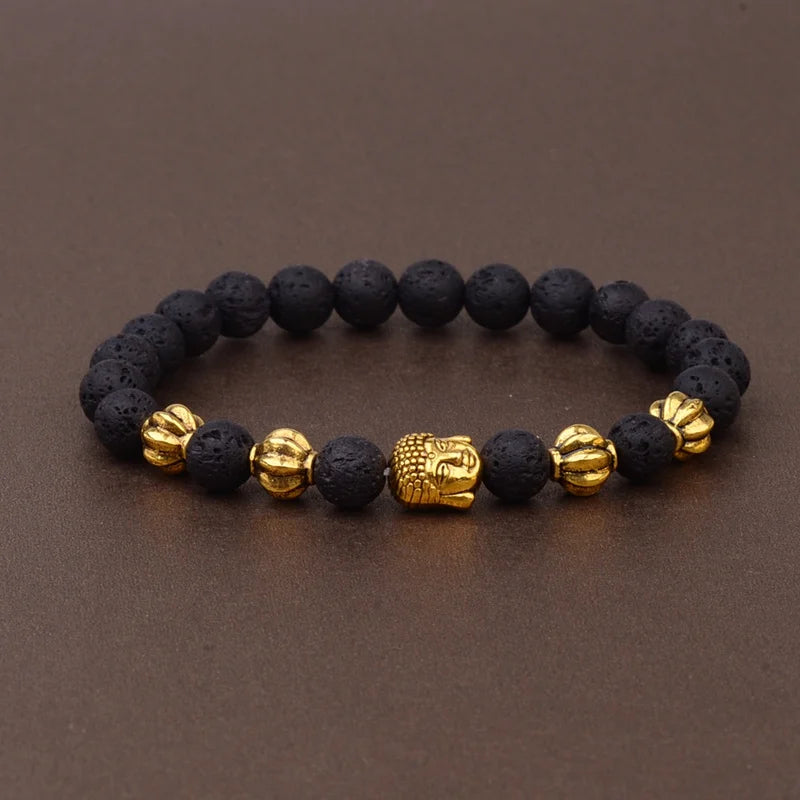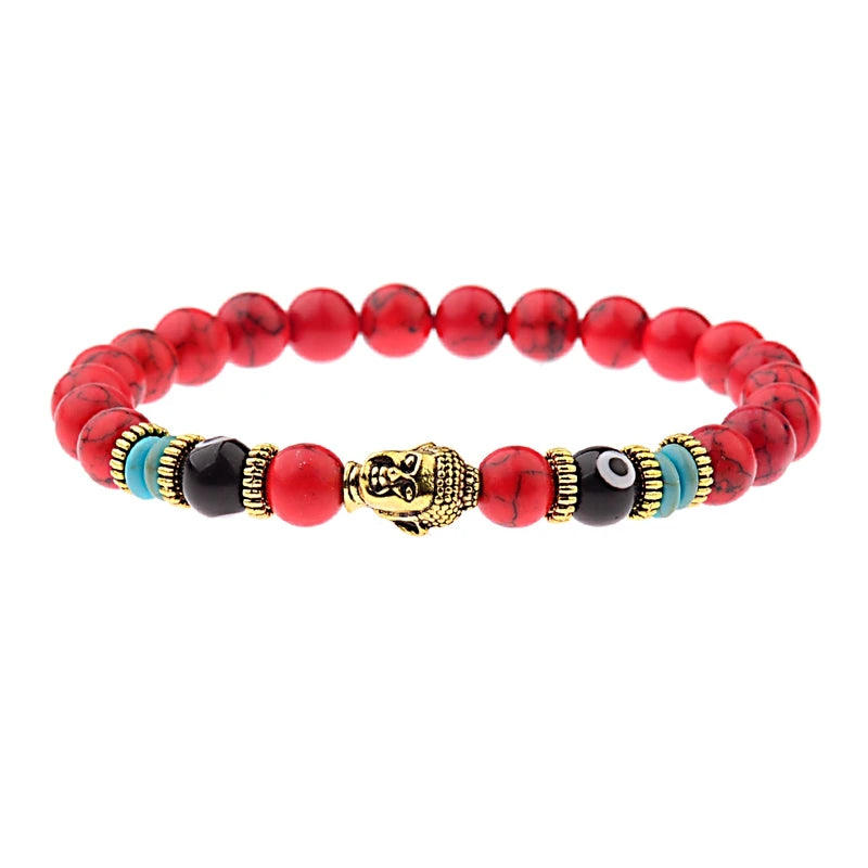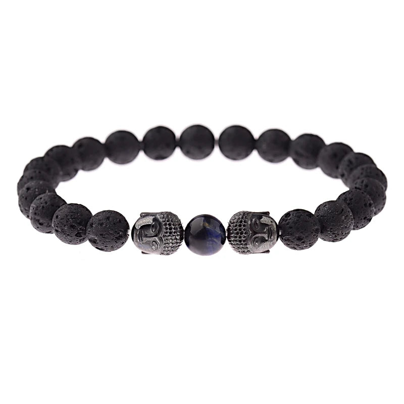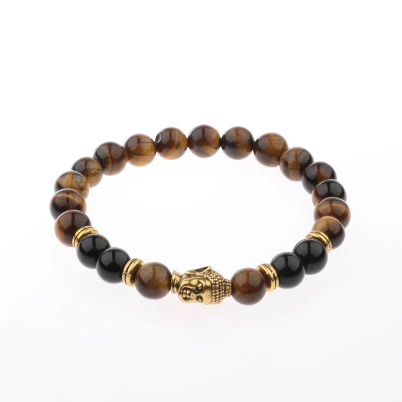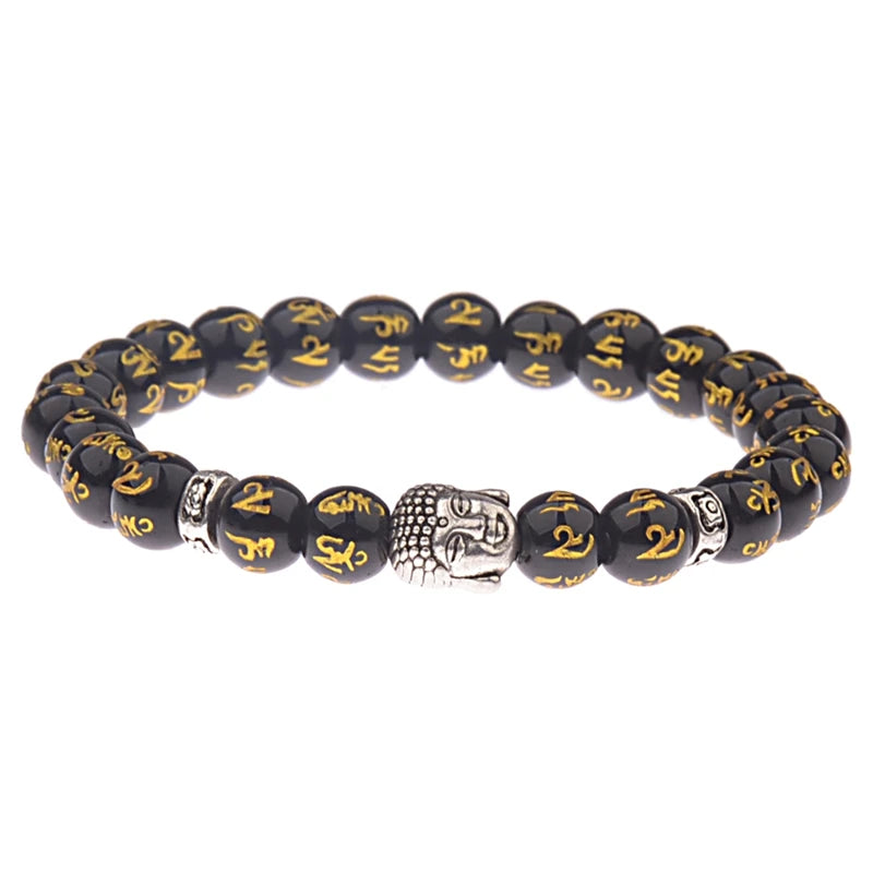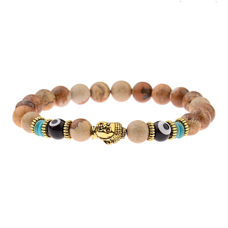 12 Styles! Natural Agate Stone Buddha & Evil Eye Bracelet Men 8mm Elastic Round Bright Black Stone Chakra Bracelet