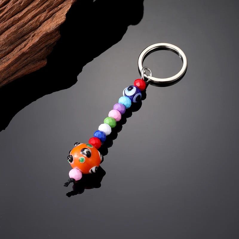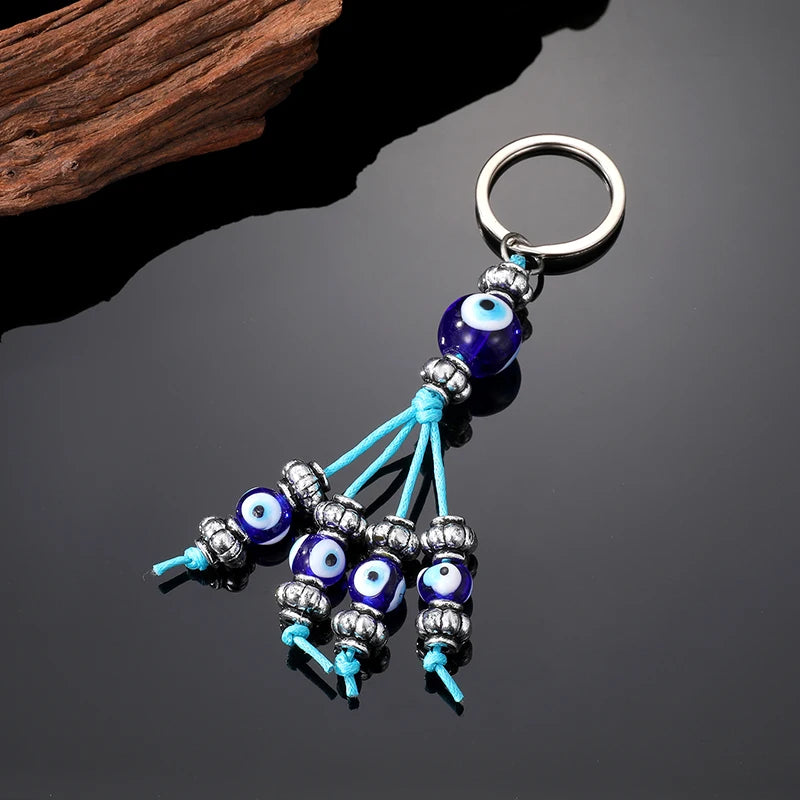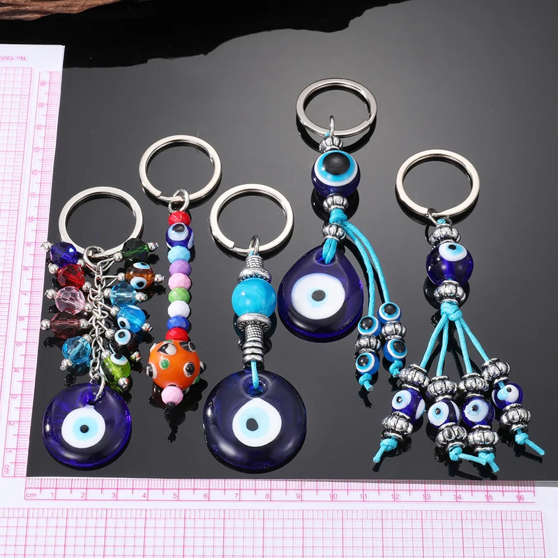 5 Styles! Crystal Colorful Blue Eye Bead Keychain Key Ring Glass Evil Eye Accessories
