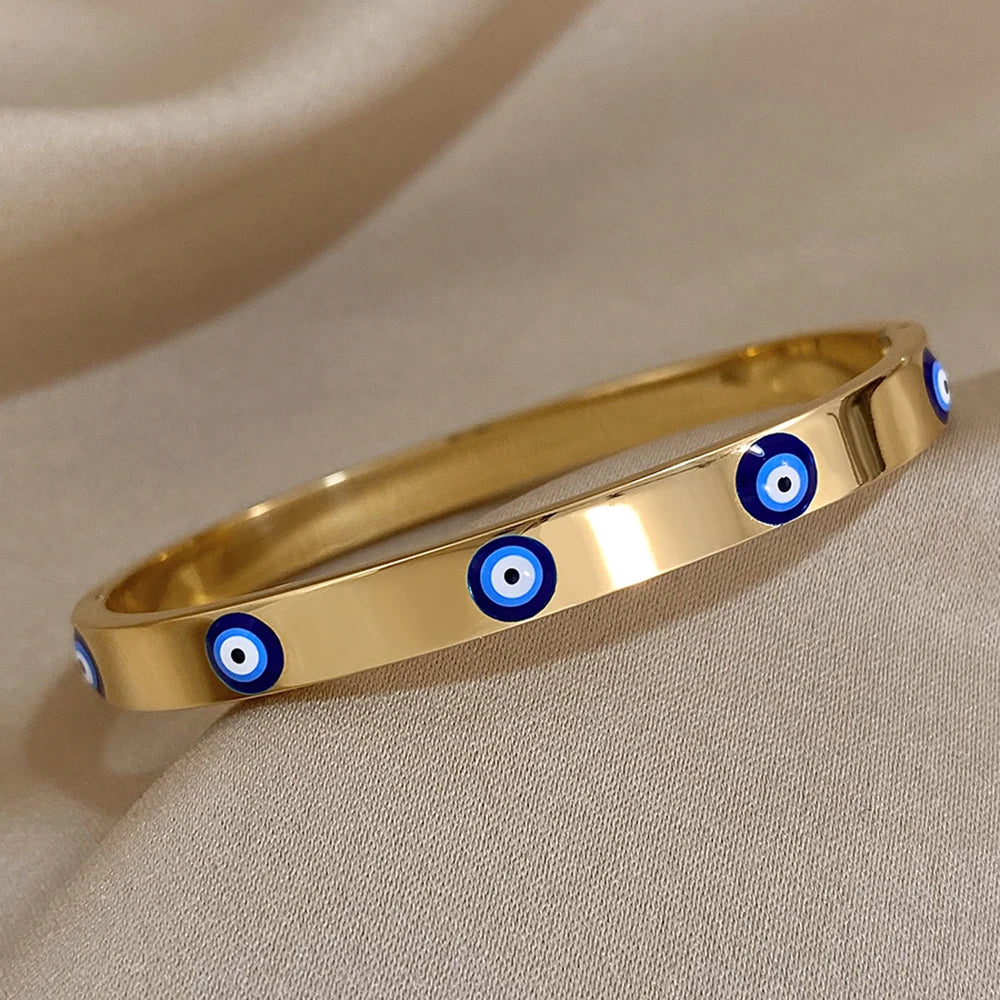 DODOHAO Boho Blue Enmale Evil Eye Stainless Steel Bangles Bracelets for Women Charm Simple Lucky Gold Plated Thin Chain Jewelry
