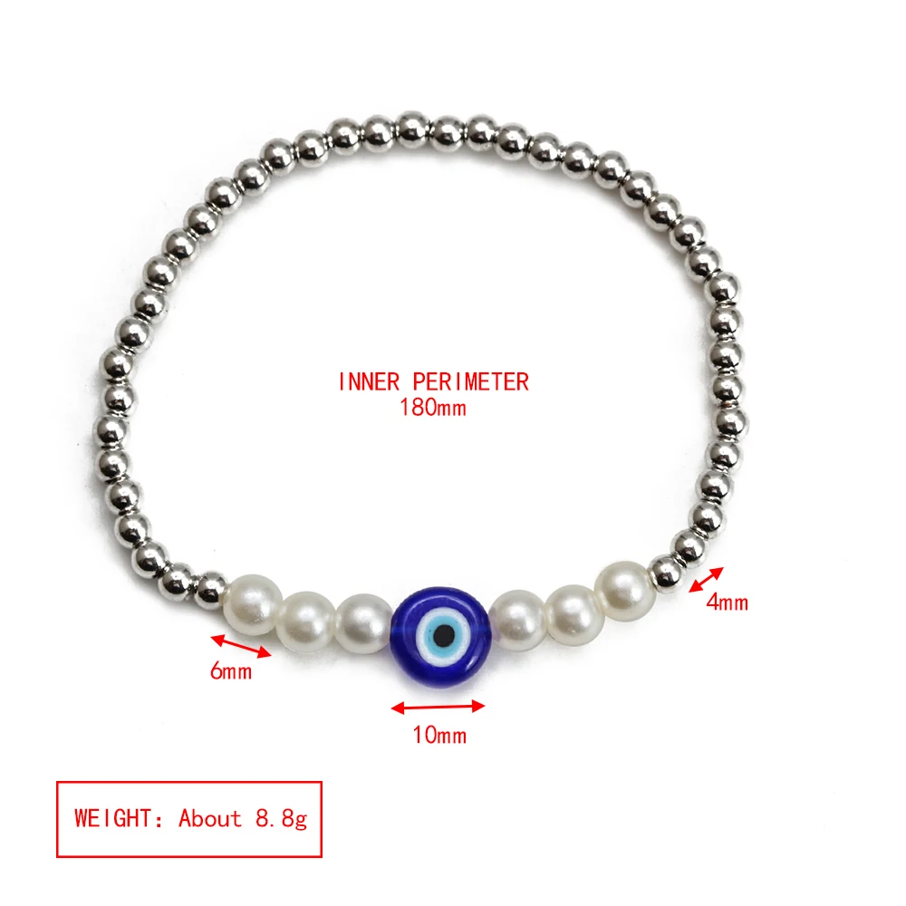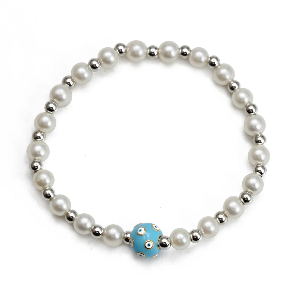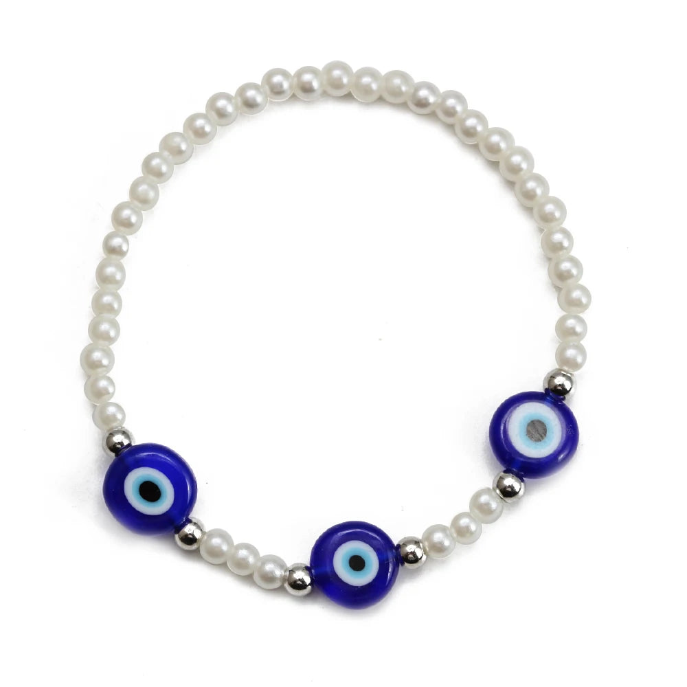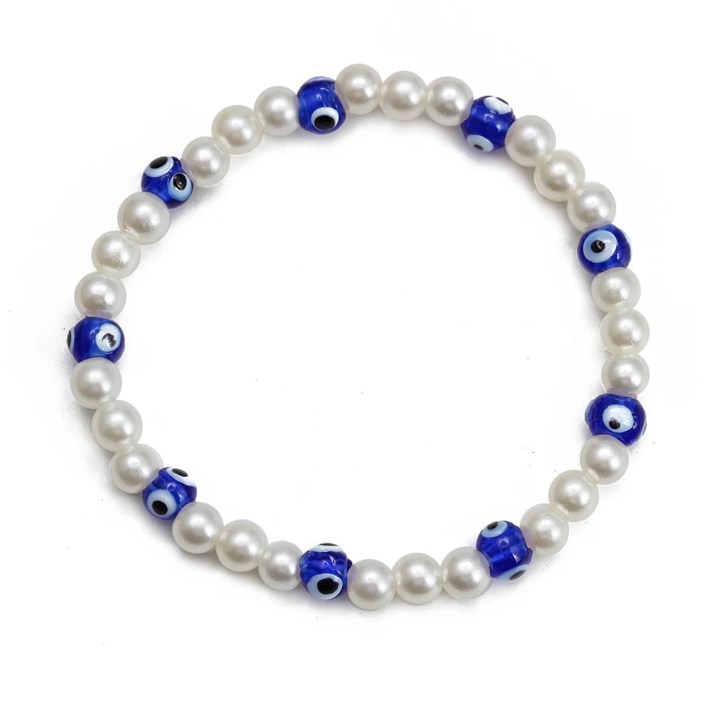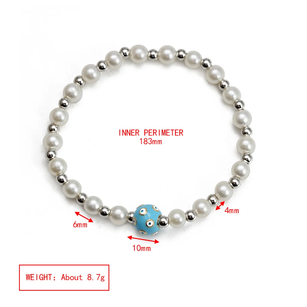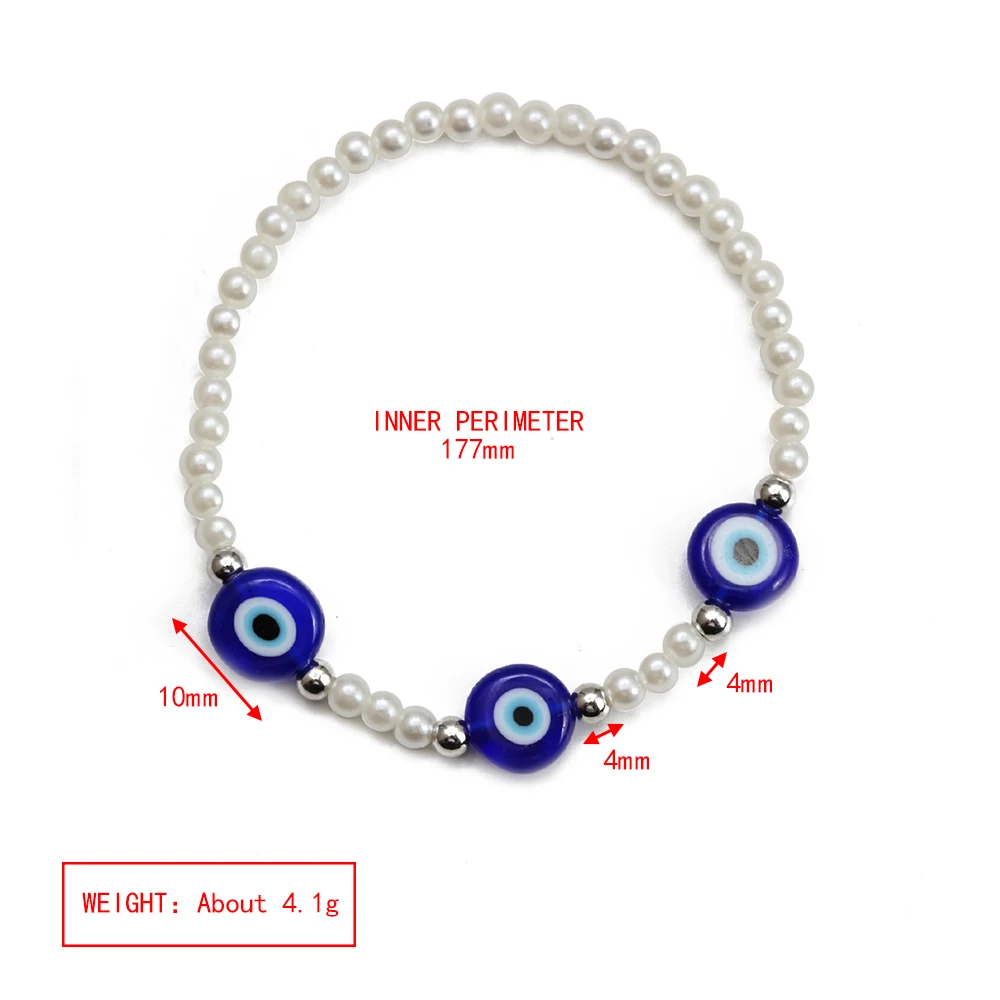 EVIL EYE Adjustable Imitation Pearl Blue Evil Eye Bead Bracelet Adjustable Copper Beaded Bracelet for Women Girls Men BE948