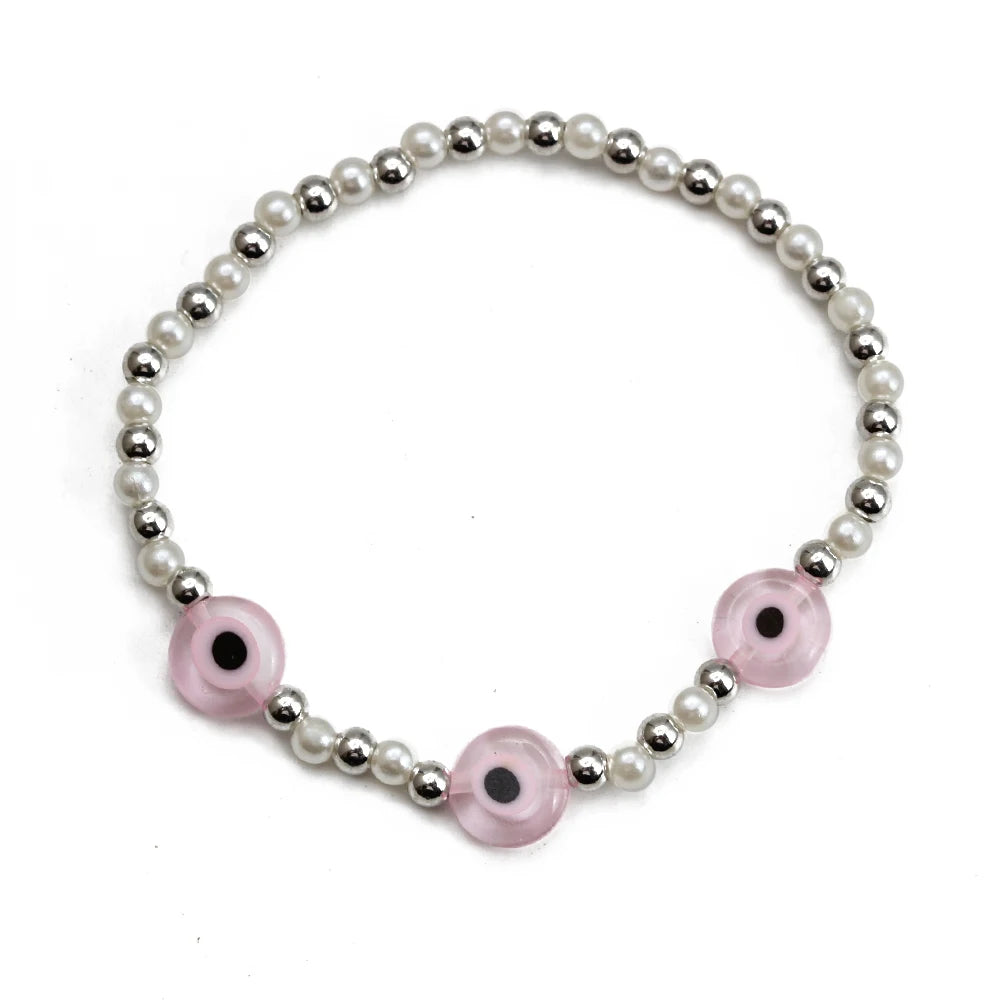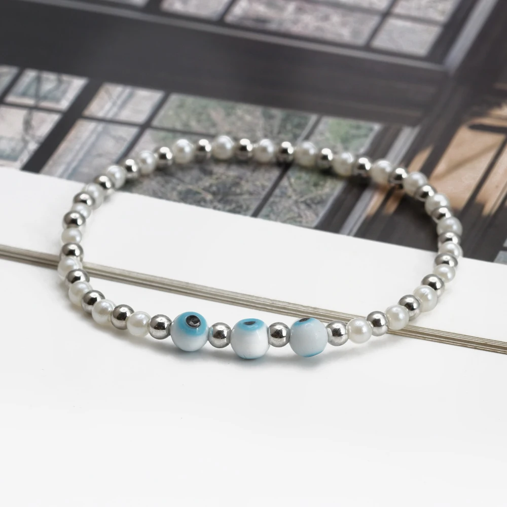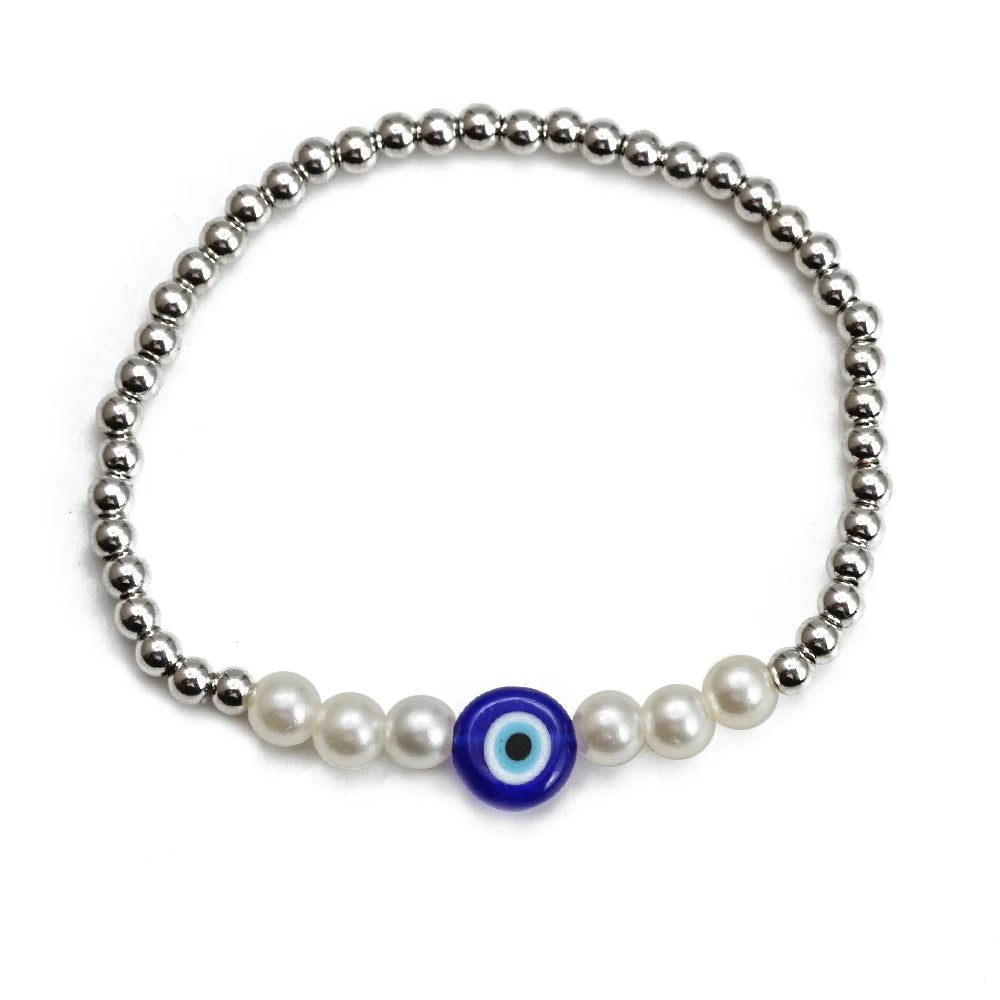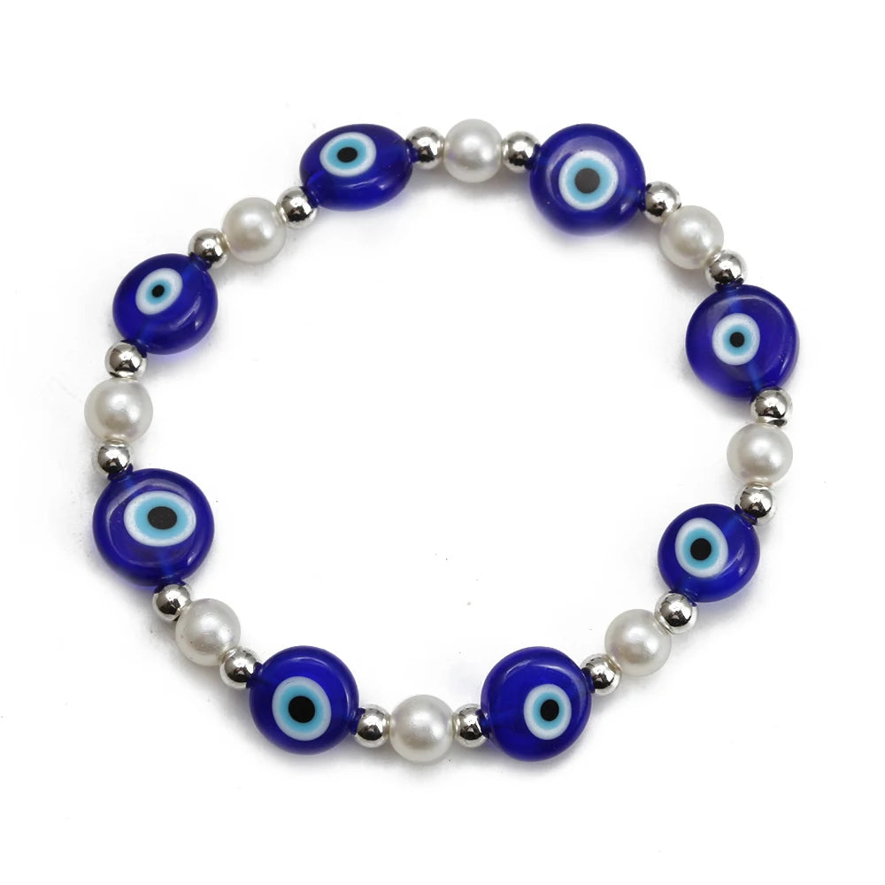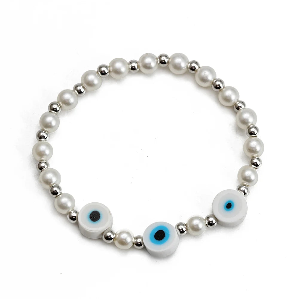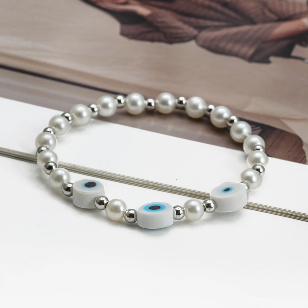 EVIL EYE Adjustable Imitation Pearl Blue Evil Eye Bead Bracelet Adjustable Copper Beaded Bracelet for Women Girls Men BE948
