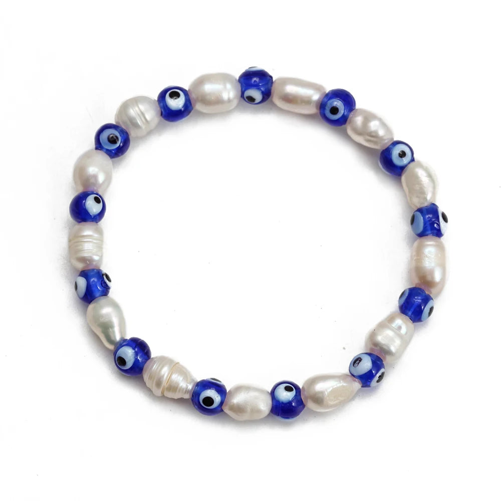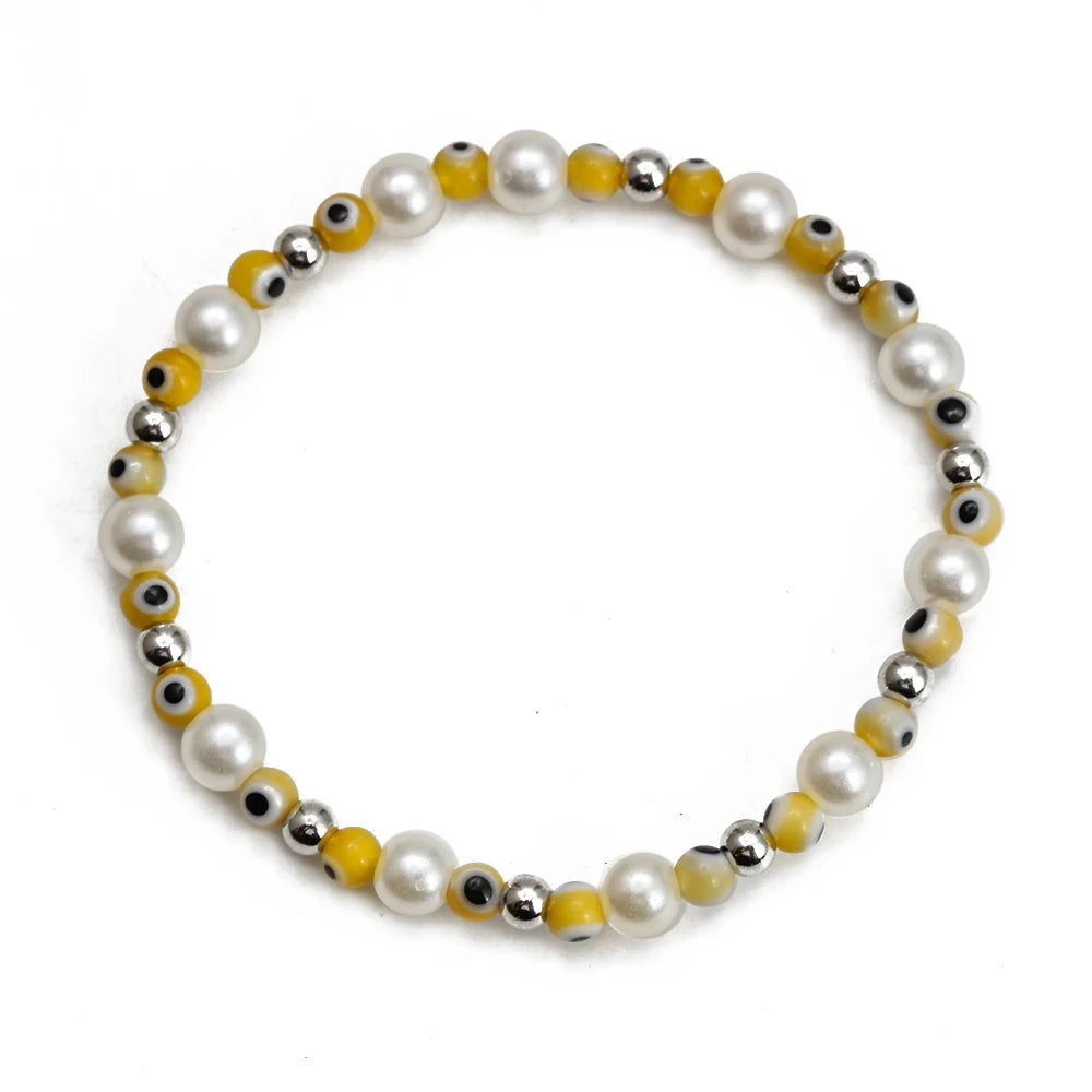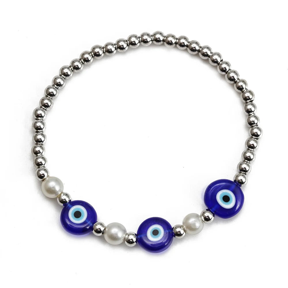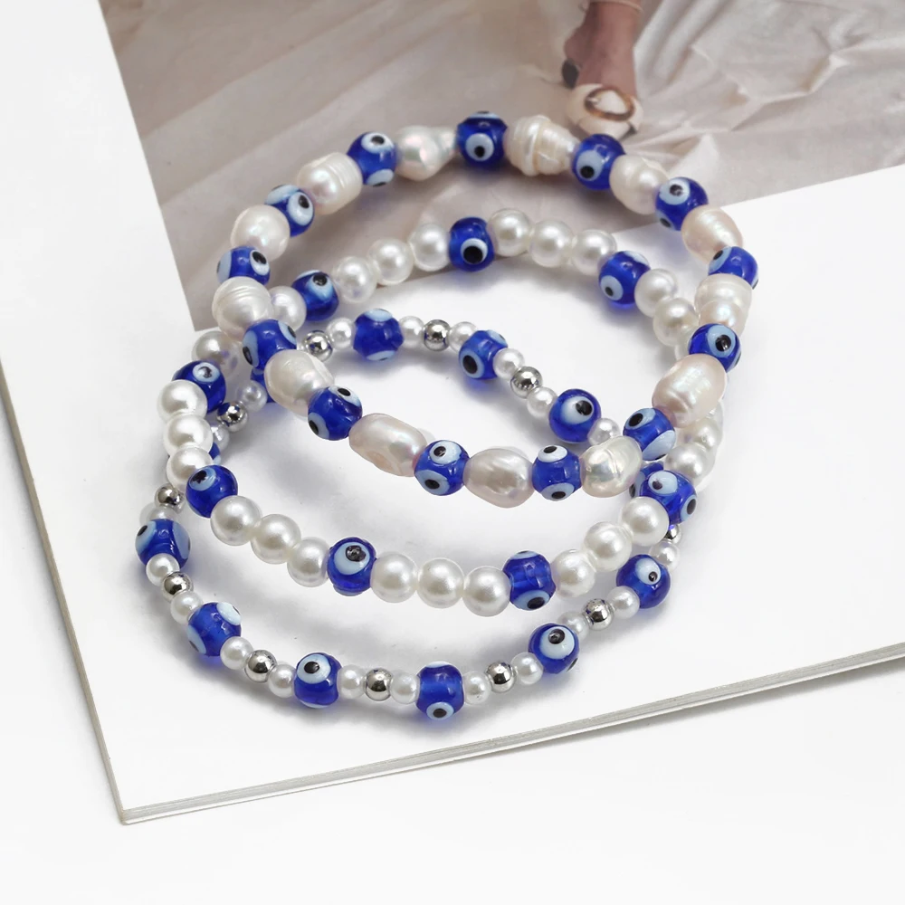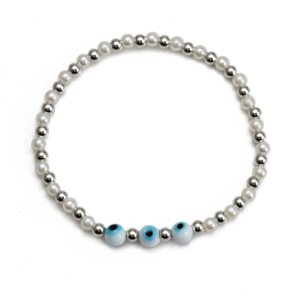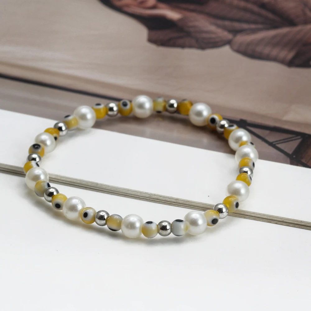 EVIL EYE Adjustable Imitation Pearl Blue Evil Eye Bead Bracelet Adjustable Copper Beaded Bracelet for Women Girls Men BE948