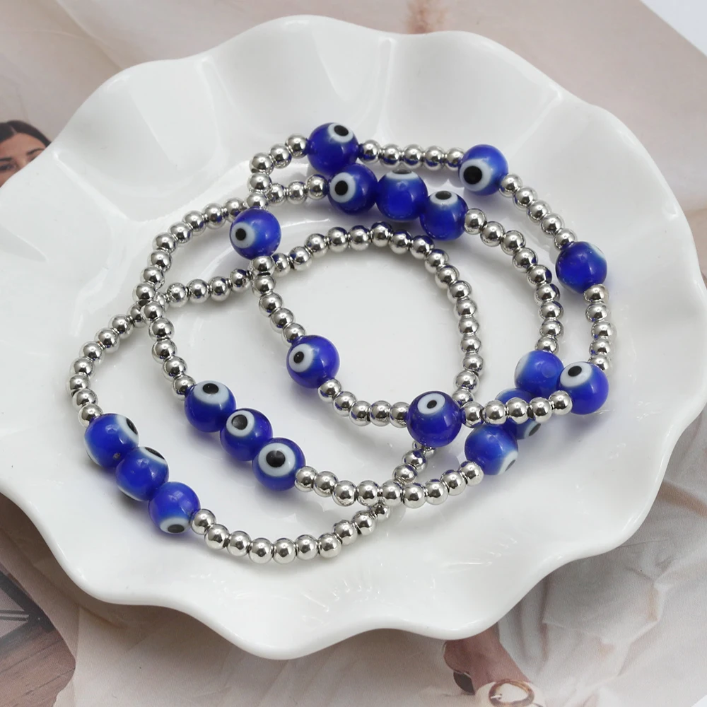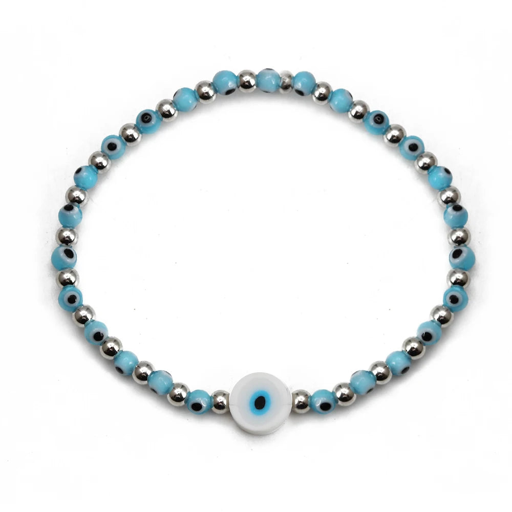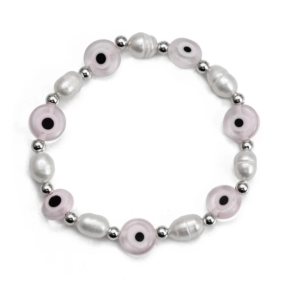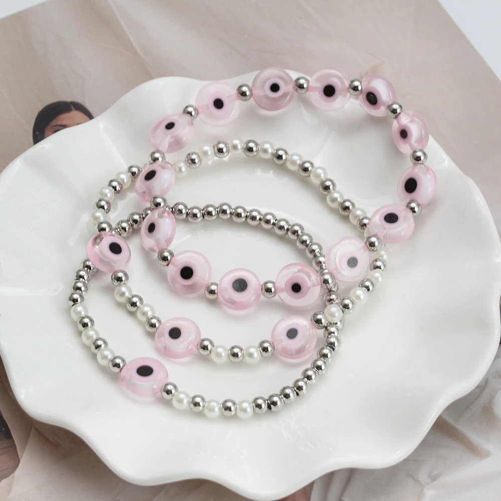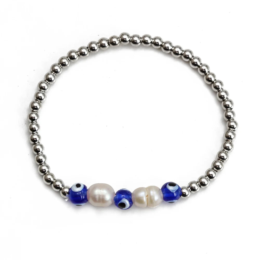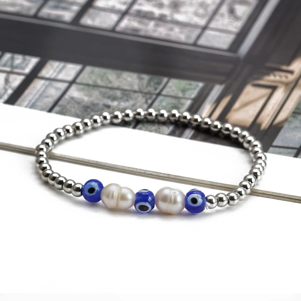 EVIL EYE Adjustable Imitation Pearl Blue Evil Eye Bead Bracelet Adjustable Copper Beaded Bracelet for Women Girls Men BE948
