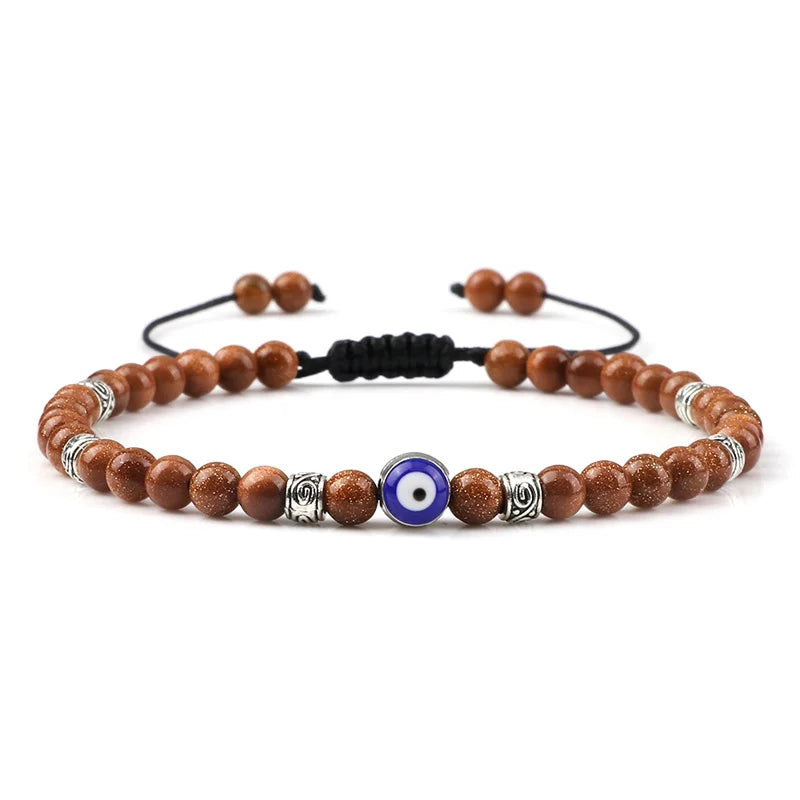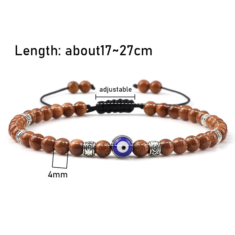 7 Colors! Adjustable Evil Eye Bracelet 4mm Natural Lava Stone and Metal Beads Handmade Braided Bracelet for Men Unisex