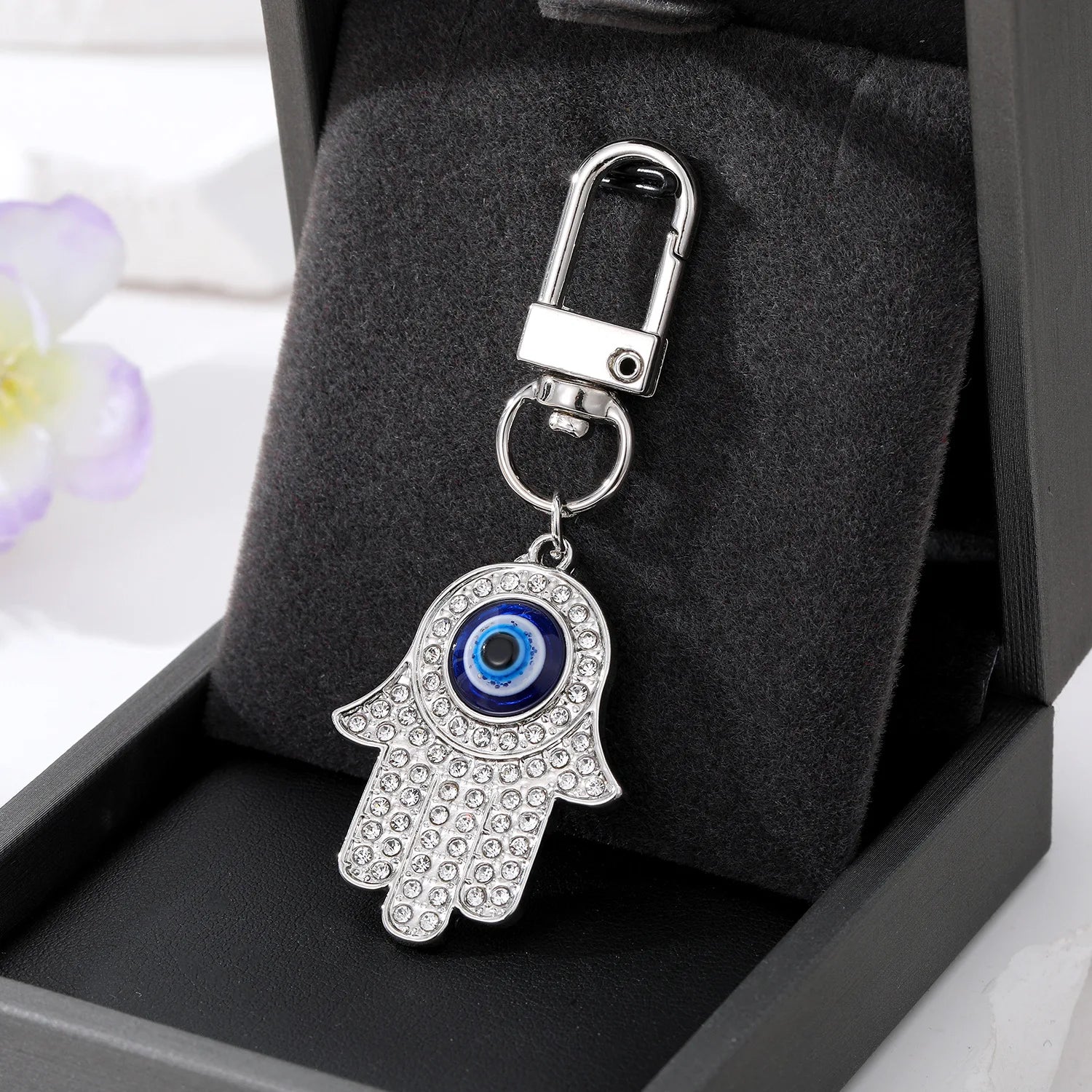 Experience 19 stunning styles with these glamorous Fashion Evil Eye Keychains in Gold or Silver, featuring intricate Crystal Fatima Hasma Hand charms. Made with high-quality zinc alloy, this accessory is perfect for adding a touch of elegance to your key ring.