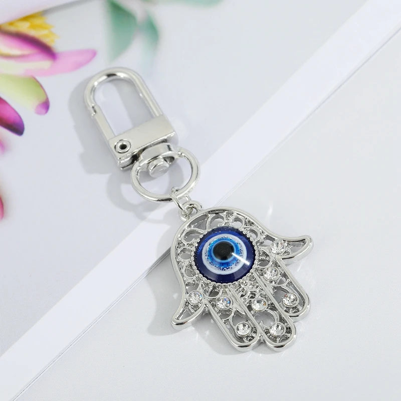 19 Style Collection! Glamorous Fashion Evil Eye Keychains Gold Silver Color Crystal Fatima Hasma Hand Charm Key Ring Accessories