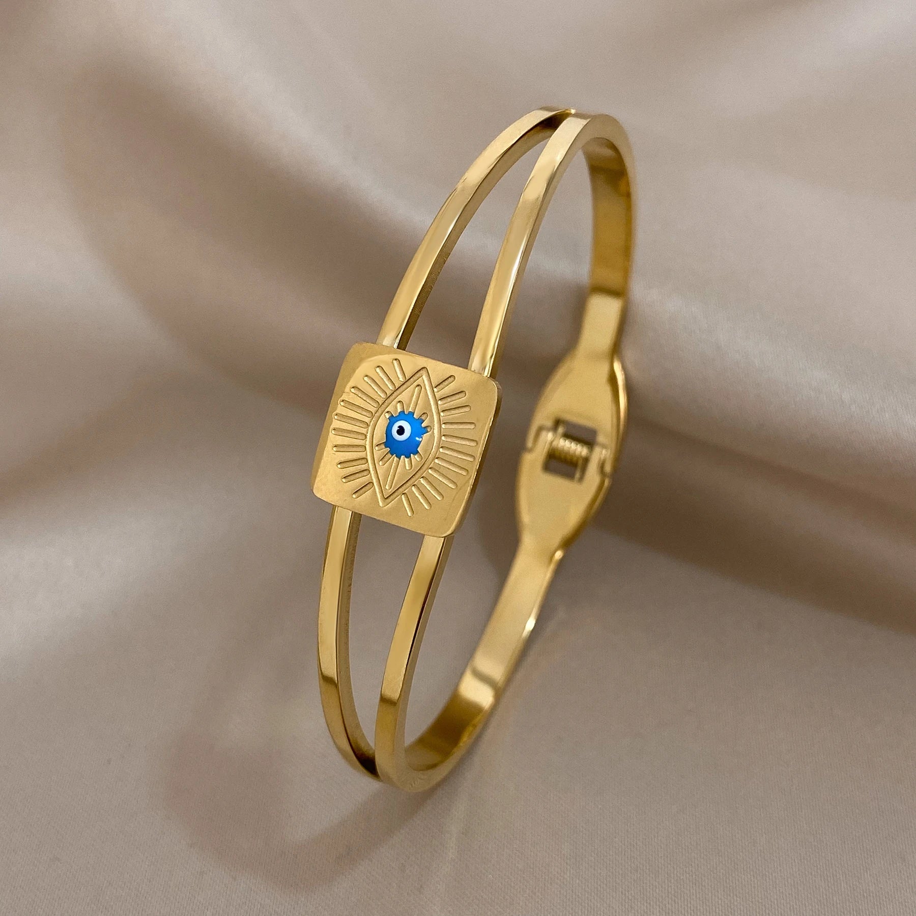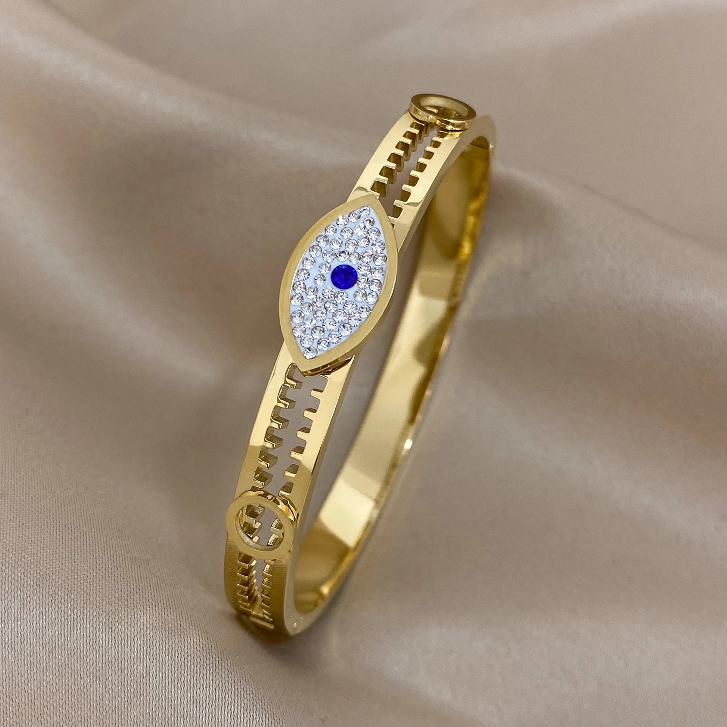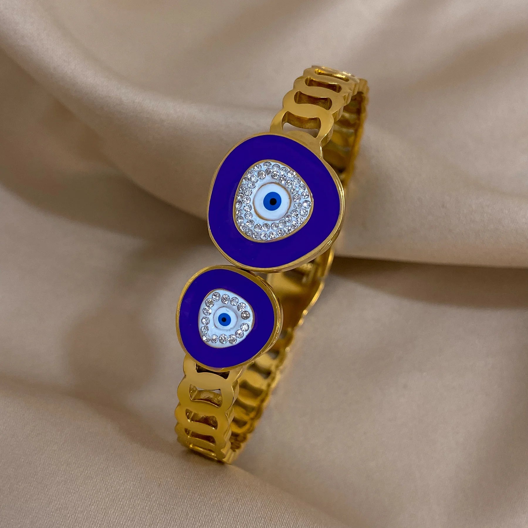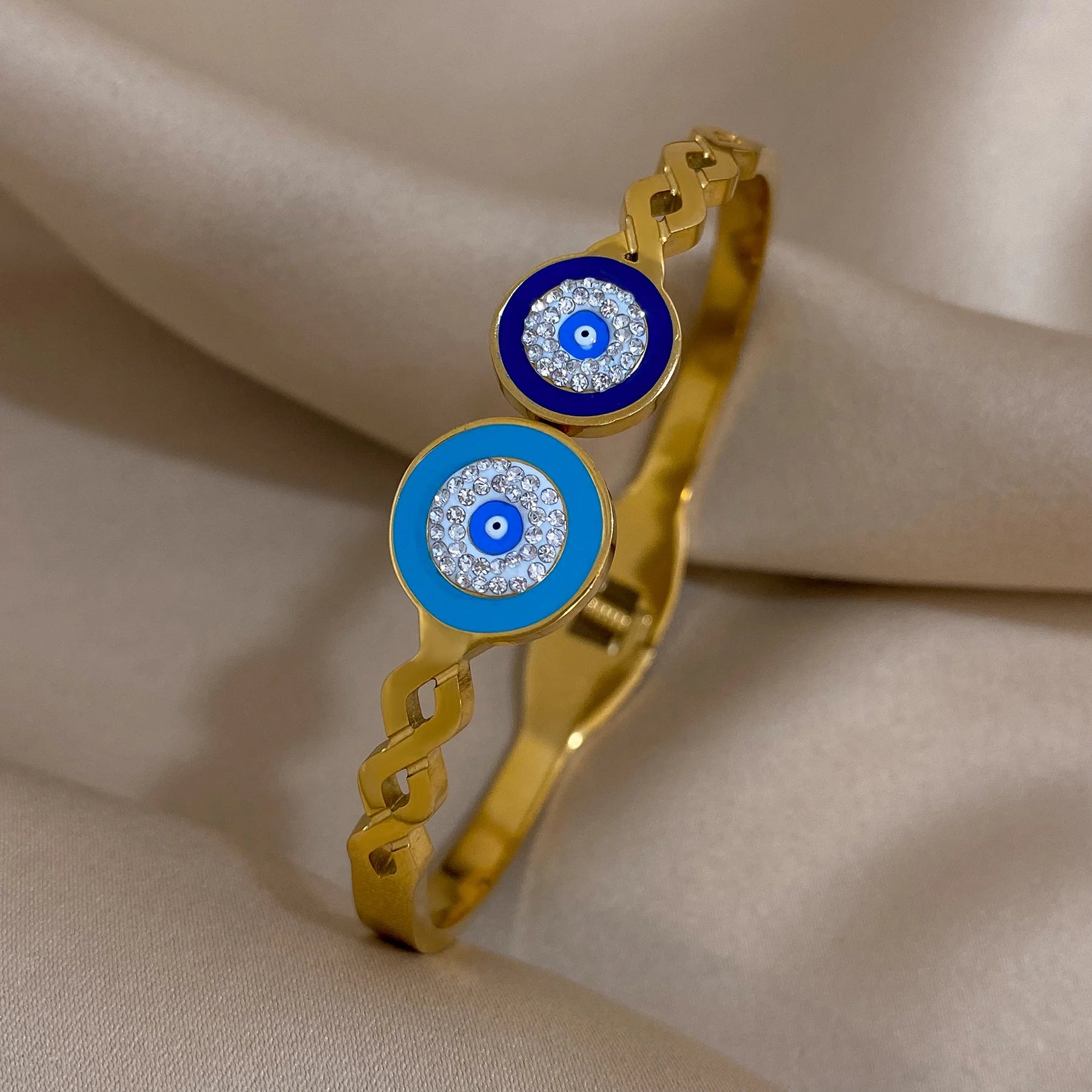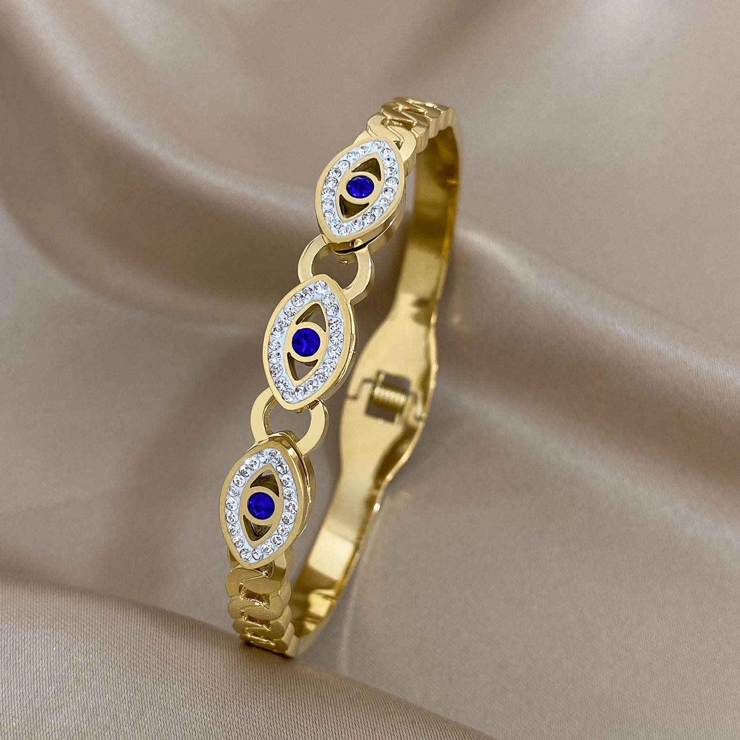 FLASHBUY Boho Evil Eye Stainless Steel Bangles Bracelets for Women Enamel Rhinestones Gold Plated Waterproof Fasion Jewelry Gift