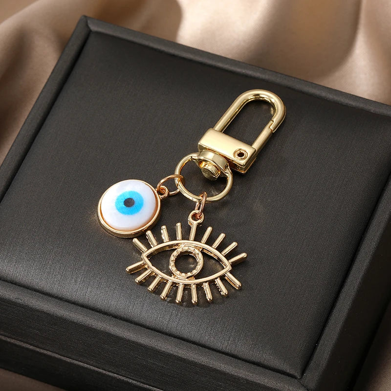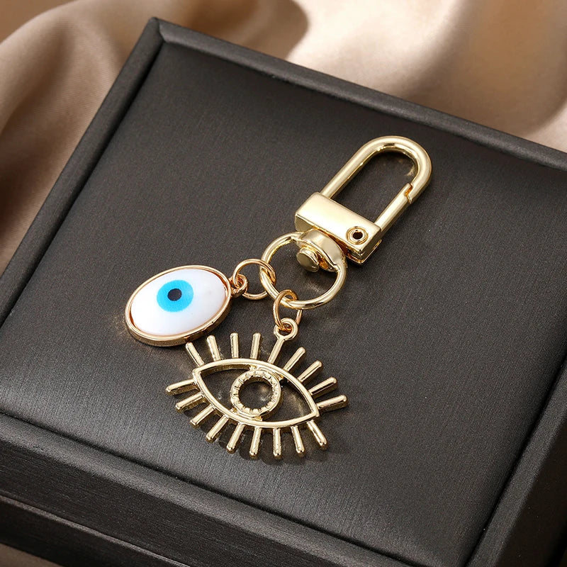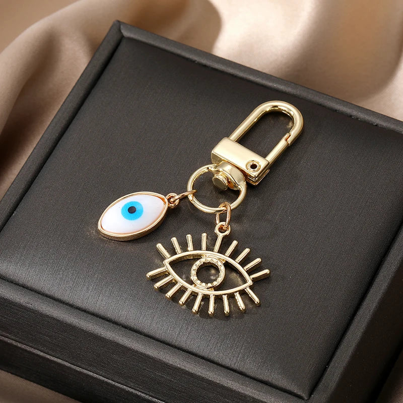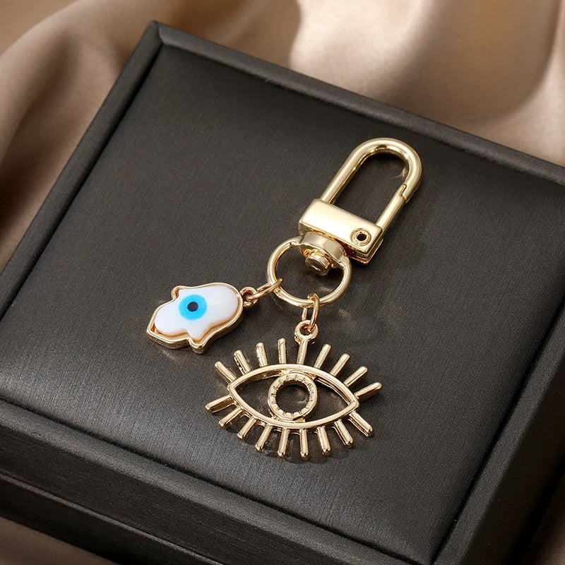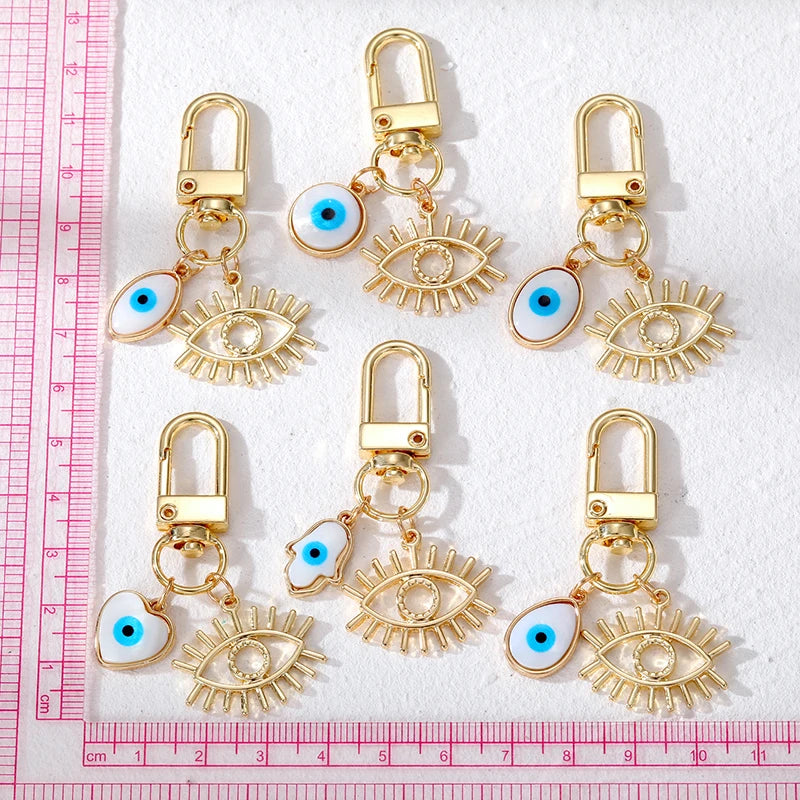 6 Styles! Gold and White Color Hollow Heart Evil Eye Hamsa Hand Keychain Keyring Accessory