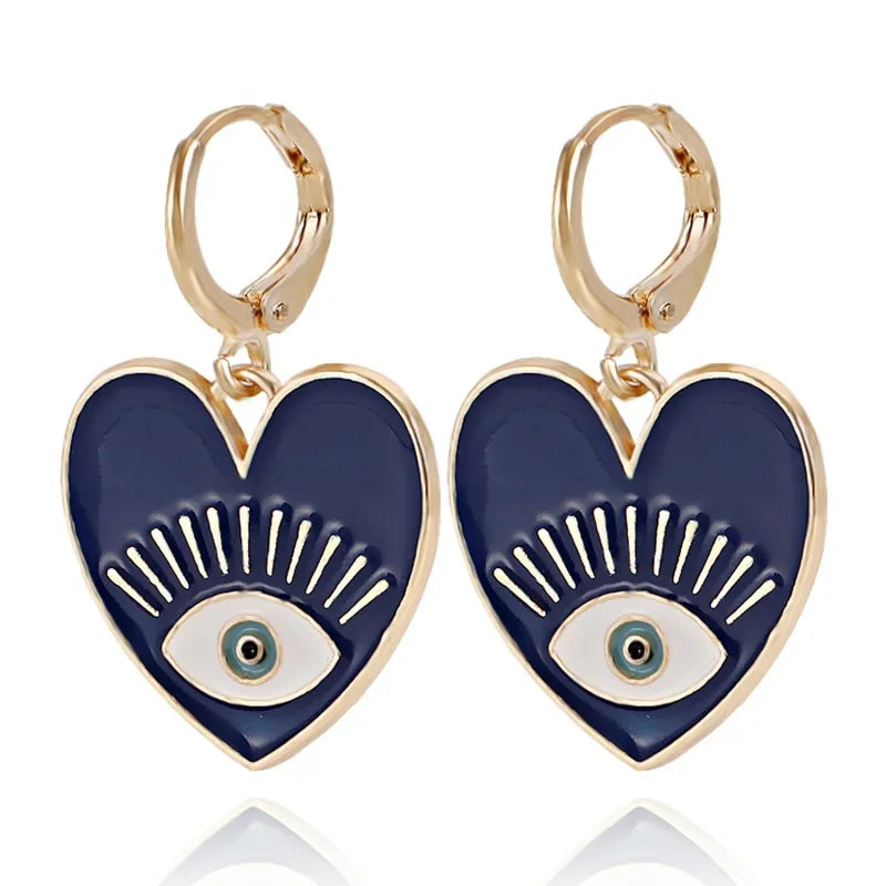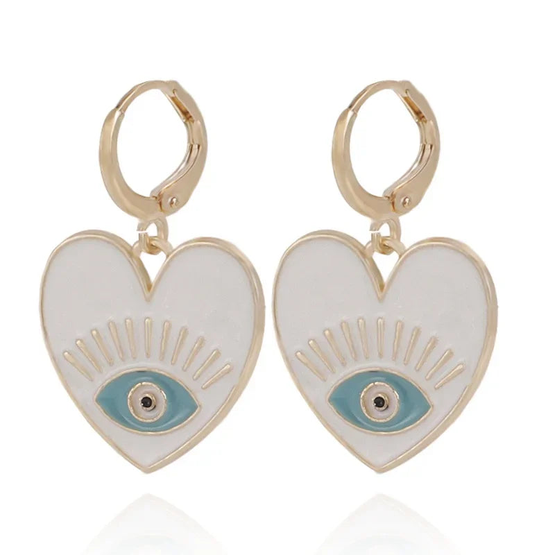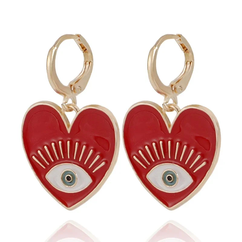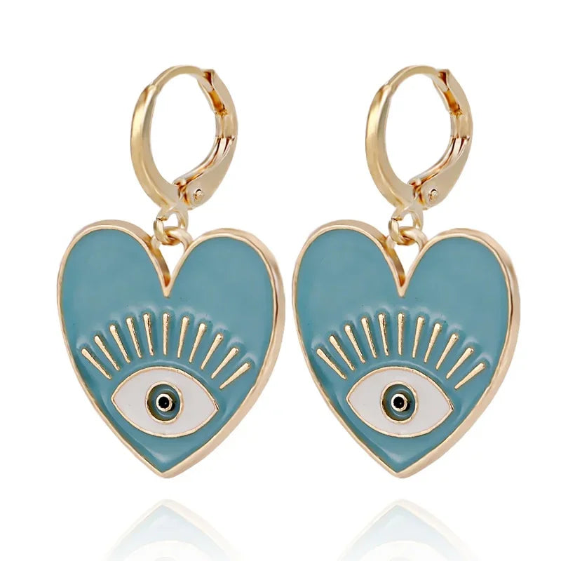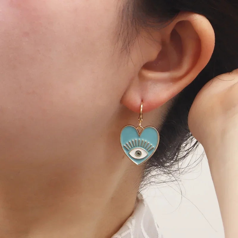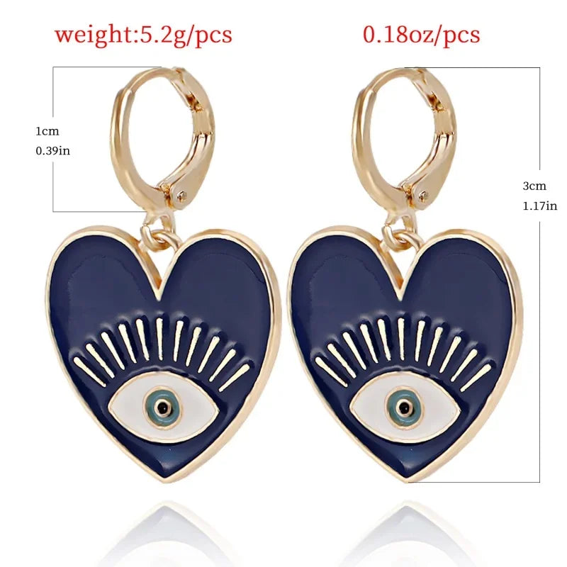 6 Colors! Colorful Evil Eye Heart-shaped Gold Color Dangle Earrings for Women Girls