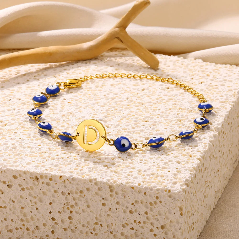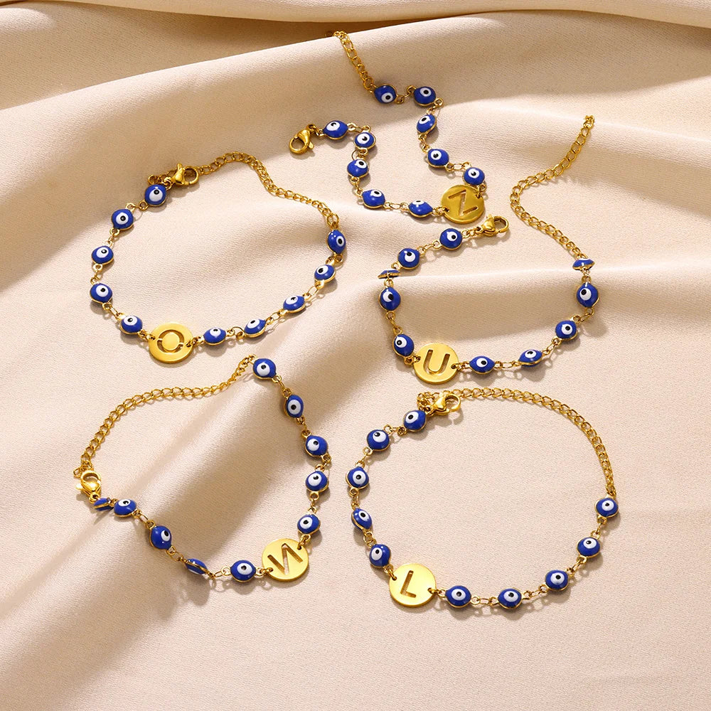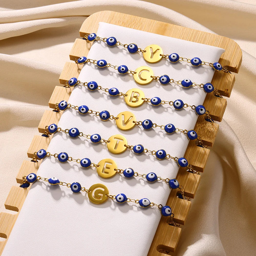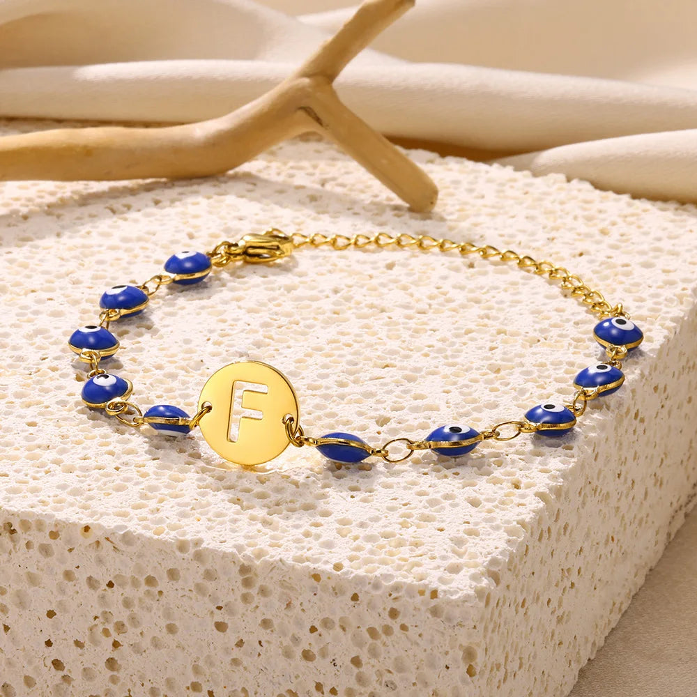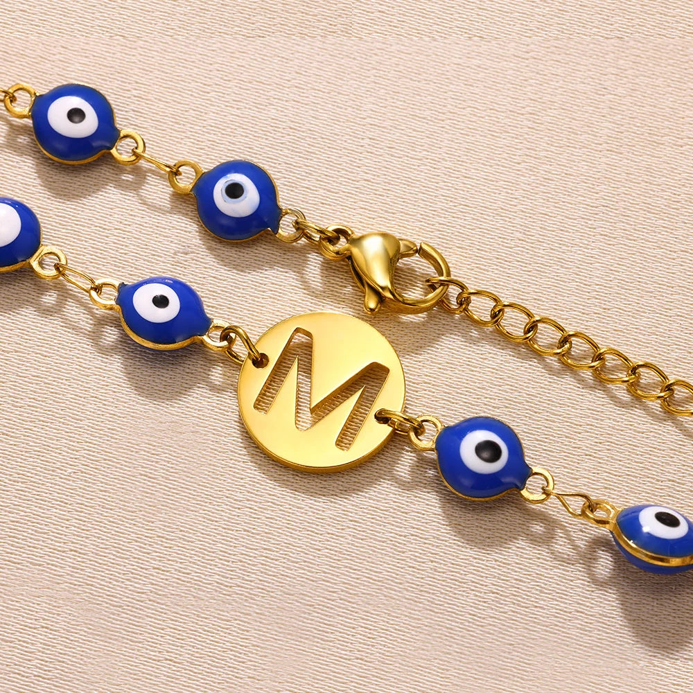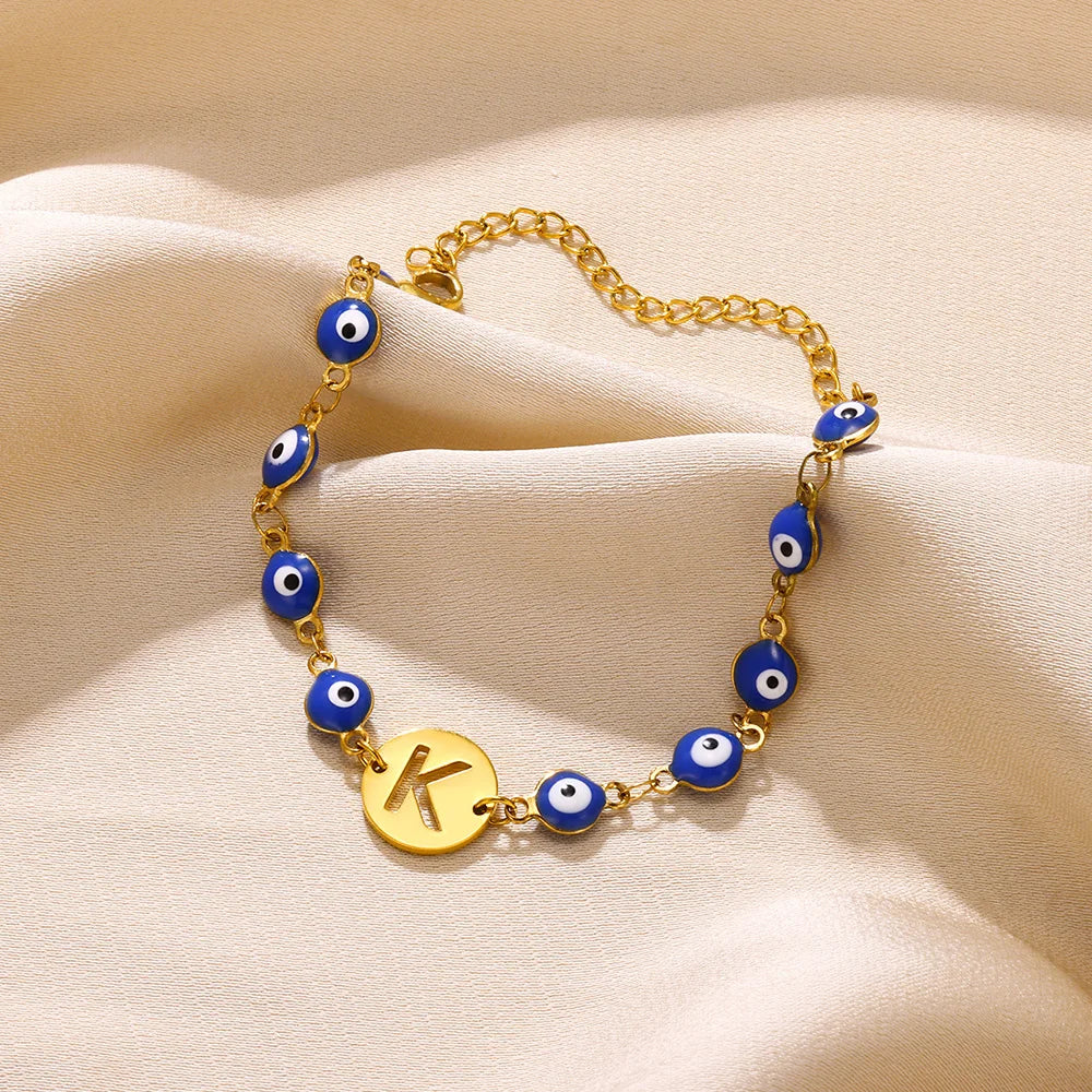 Custom Letter Name Initial Lucky Protective Blue Eye Letters Bracelets For Women Girl Amulet Jewelry Stainless Steel Gold Color
