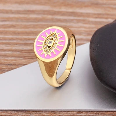 5 Colors! Colorful Evil Eye Finger Rings Adjustable Gold Plated