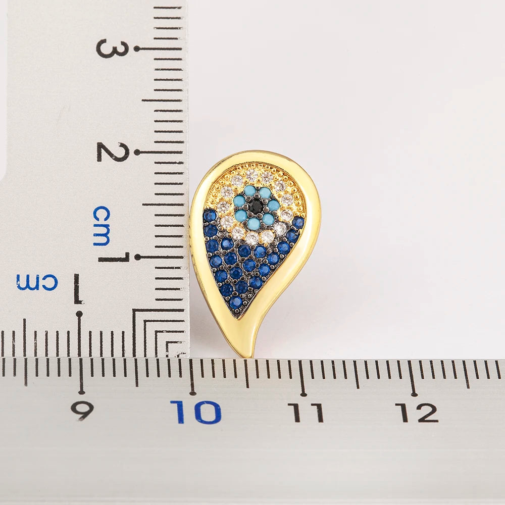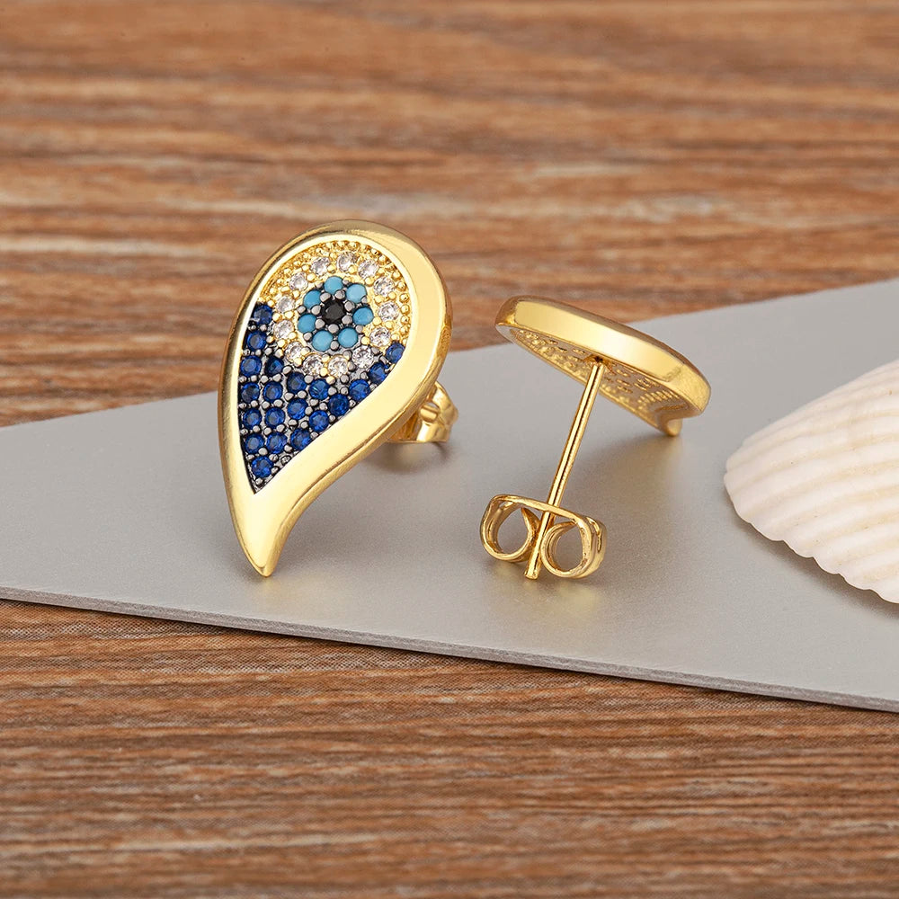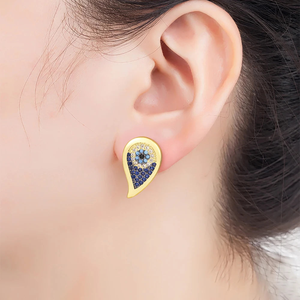 Lucky Turkish Evil Eye Colorful Zirconia Stud Earrings For Women Water Drop Gold Plated Crystal