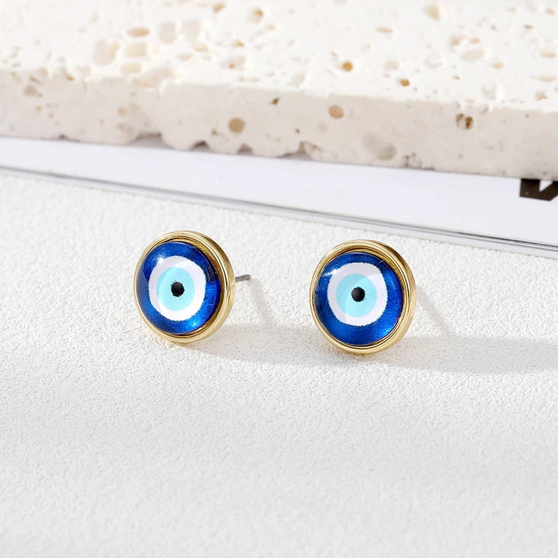 Silver or Gold! Simple Resin Blue Evil Eye Stud Earrings