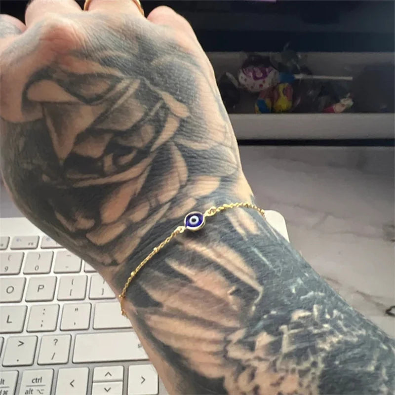 Three Unique, Simple Options! Effortlessly Stylish Evil Eye Bracelet for Women in Gold Copper with Adjustable Chain and Lobster Clasp. Each Bracelet Weighs Approximately 4g. Made with high-quality copper material.