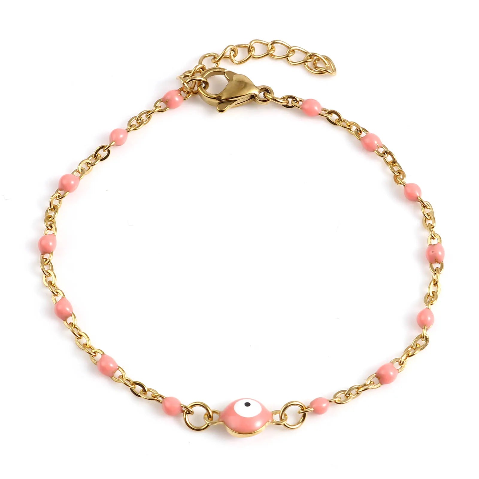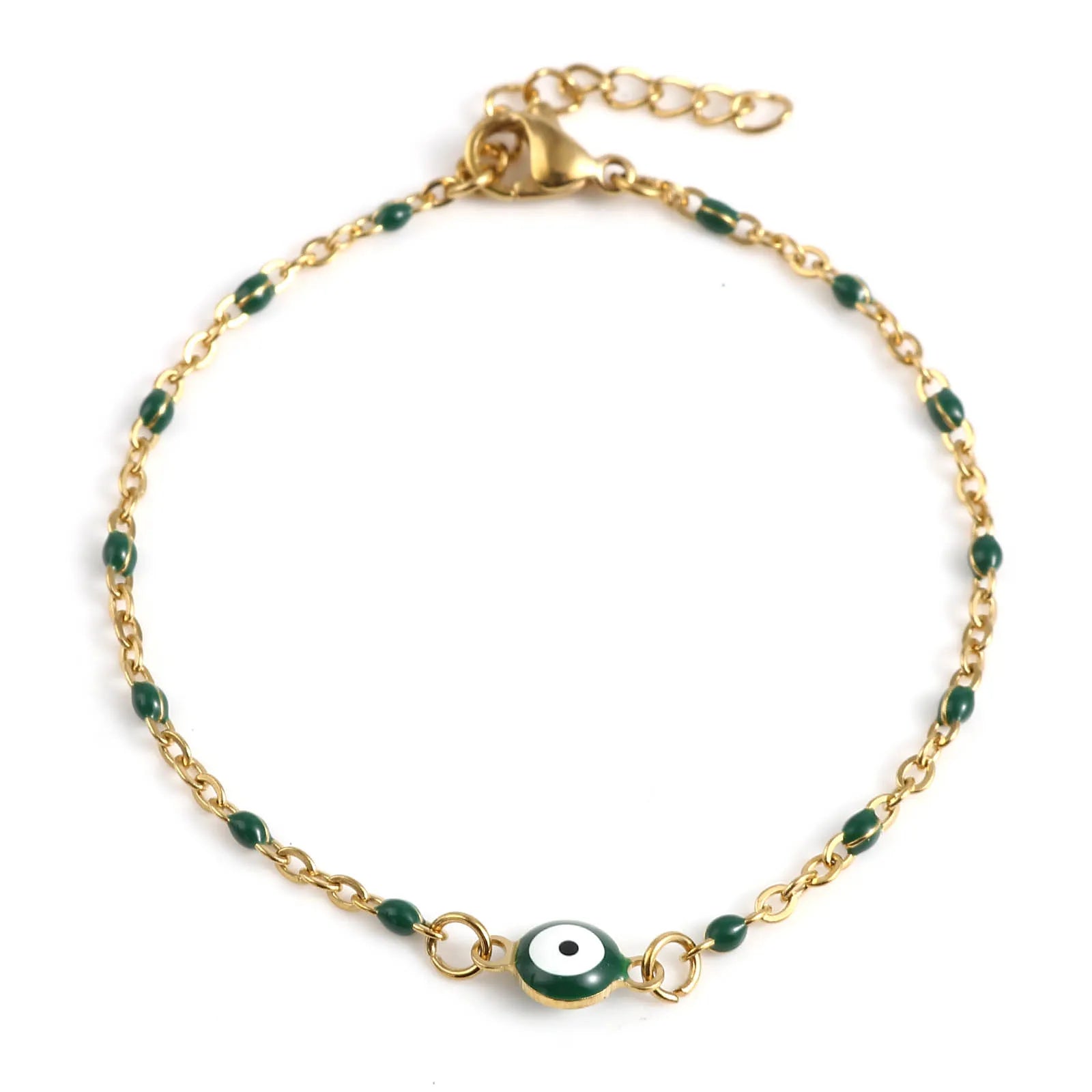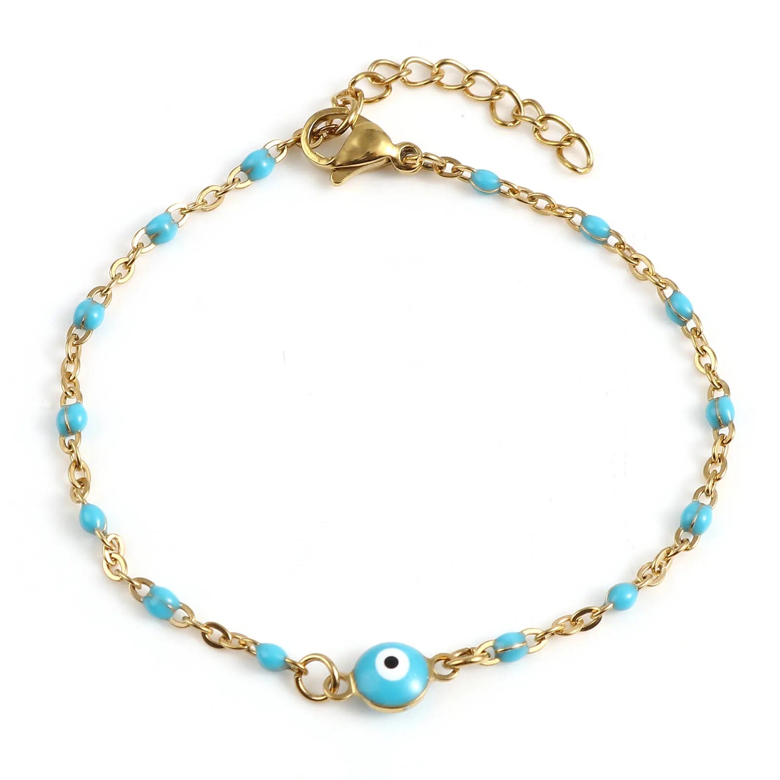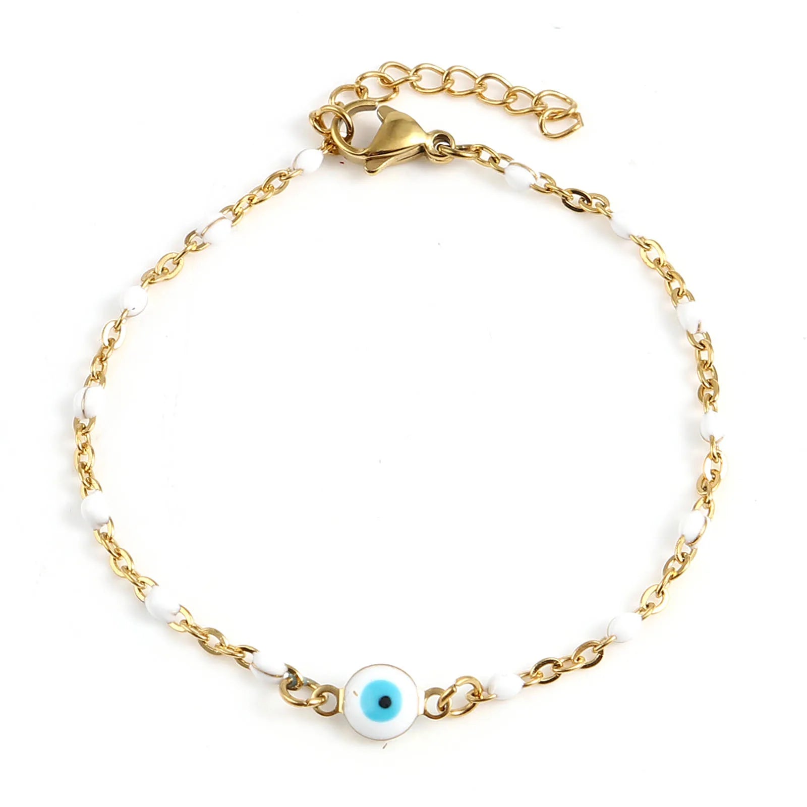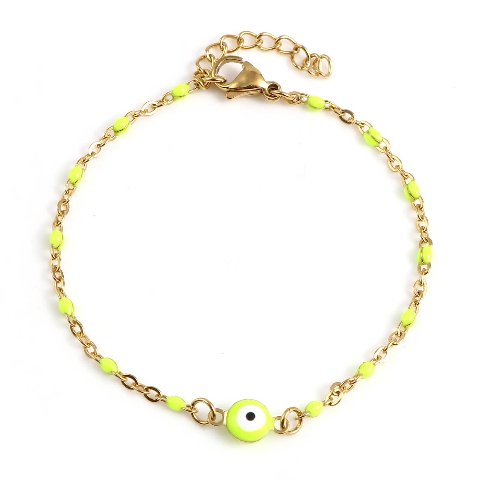 10 Colors! Colorful Gold Link Cable Chain Bracelets Gold Color Multicolor Round Evil Eye Enamel 17.5cm(6 7/8") long, 1 Piece
