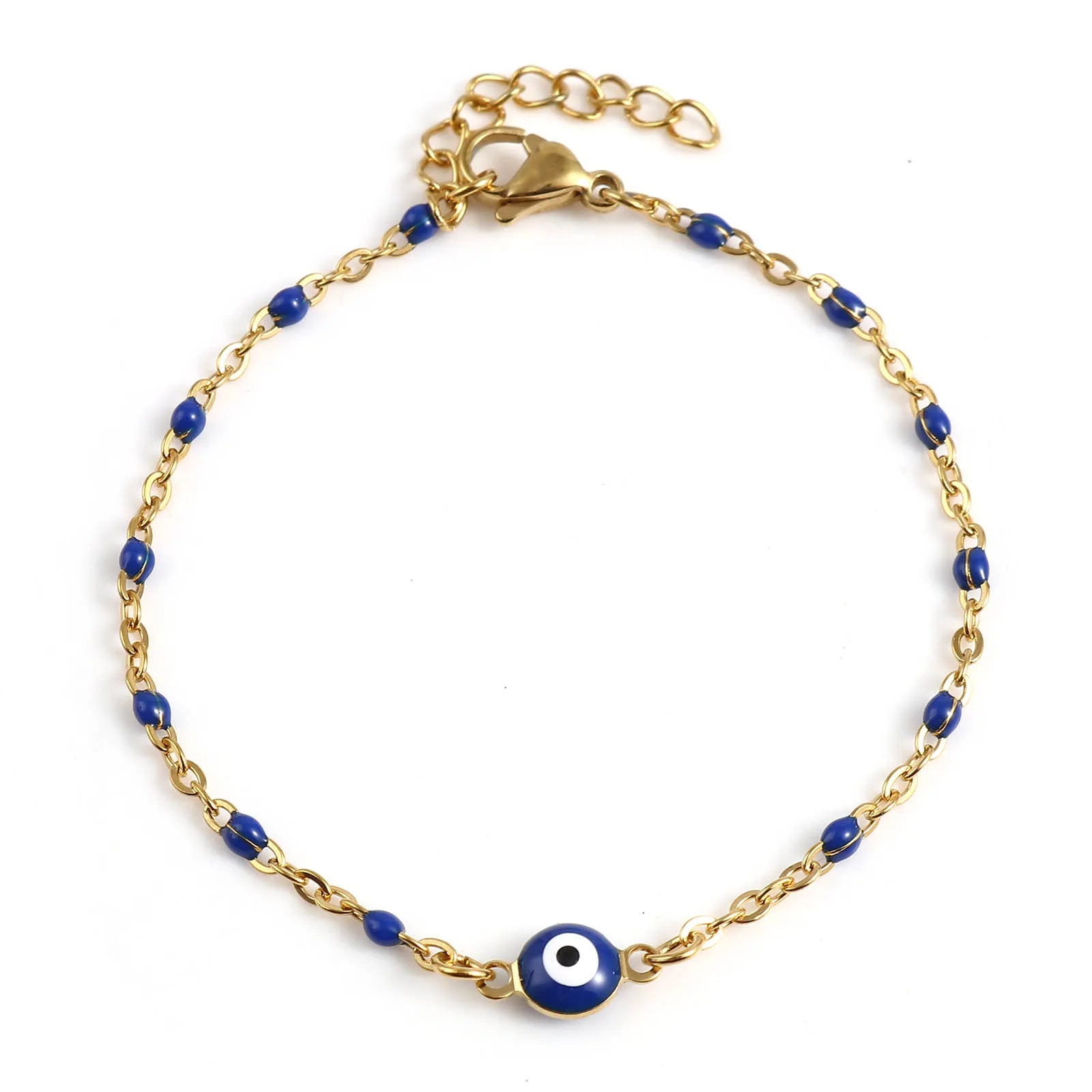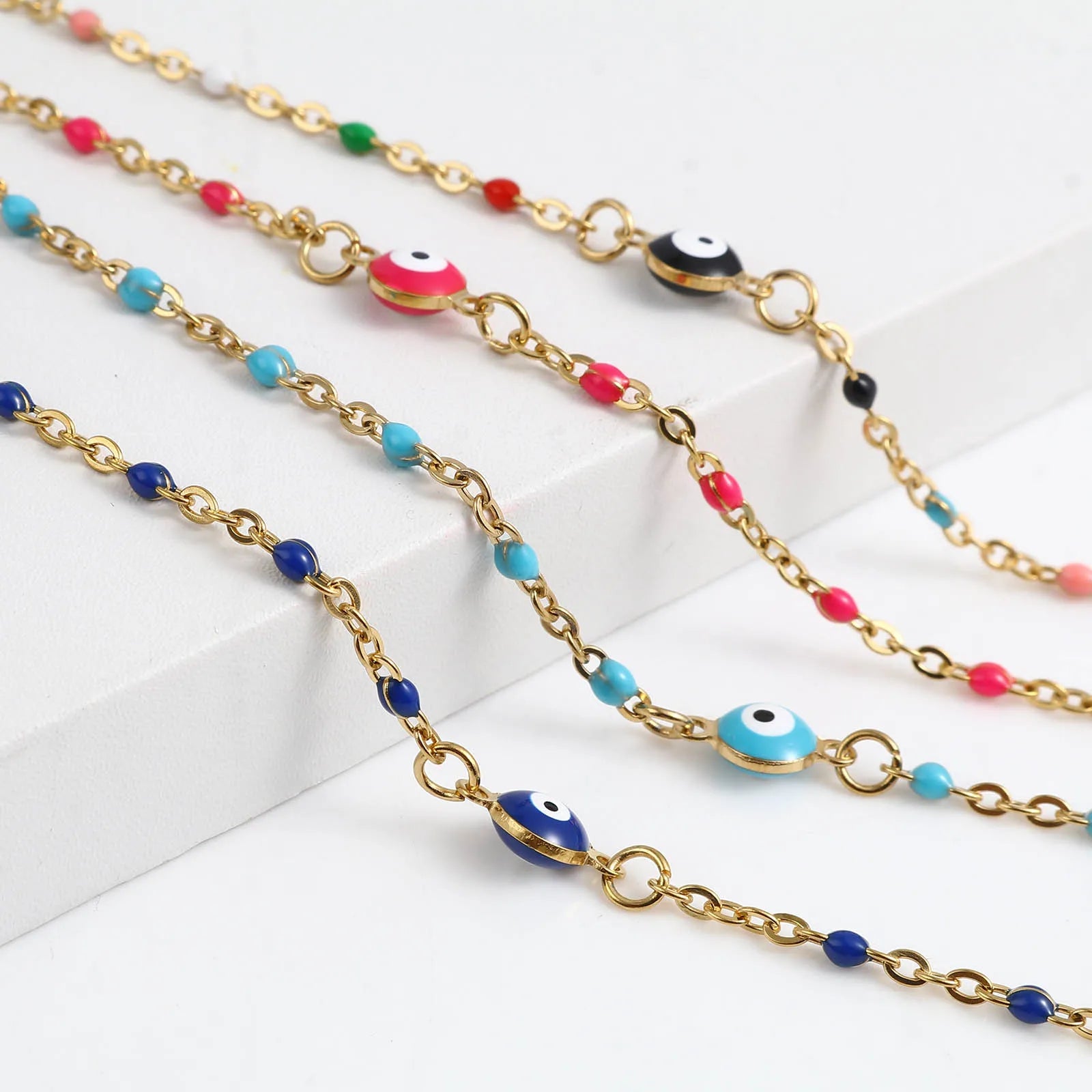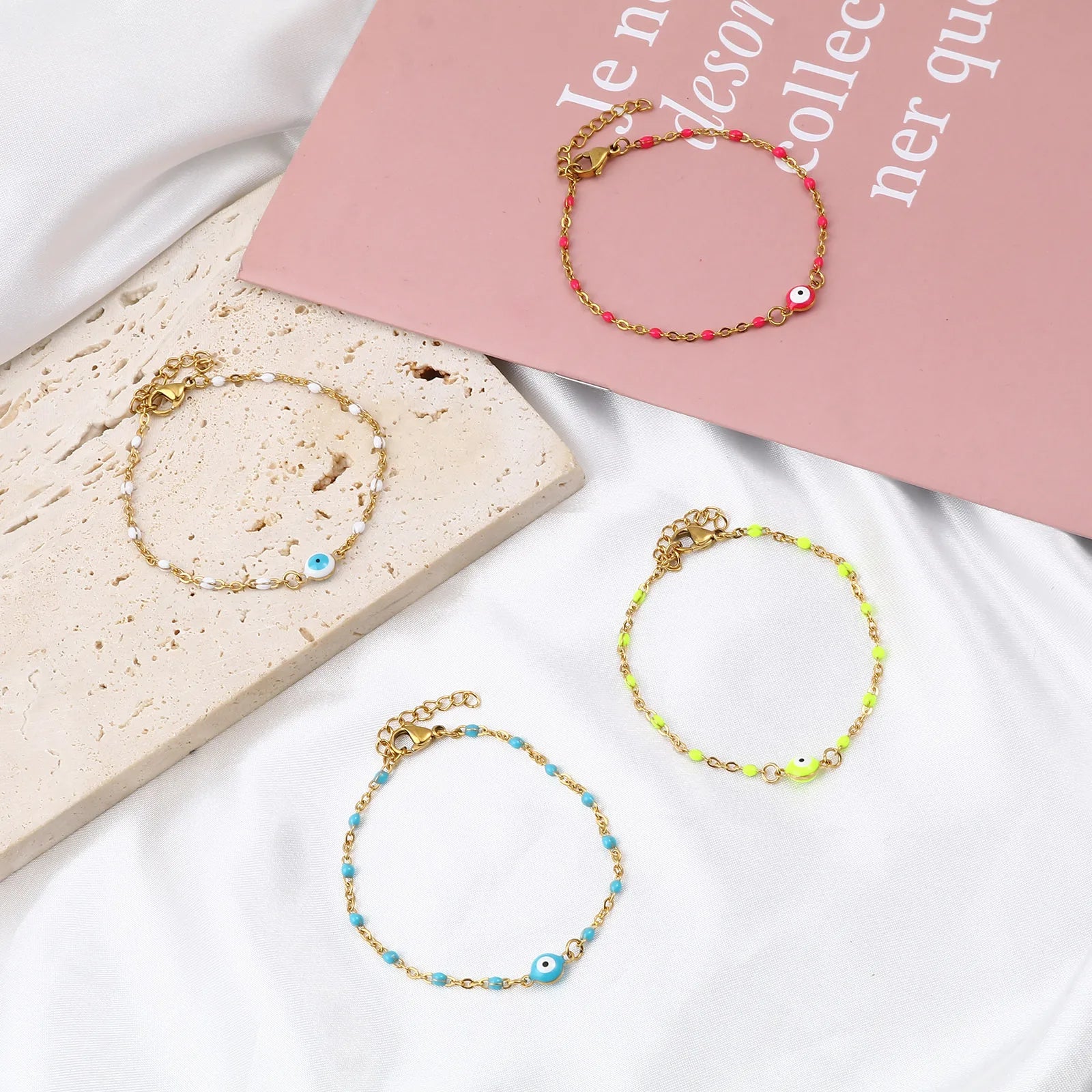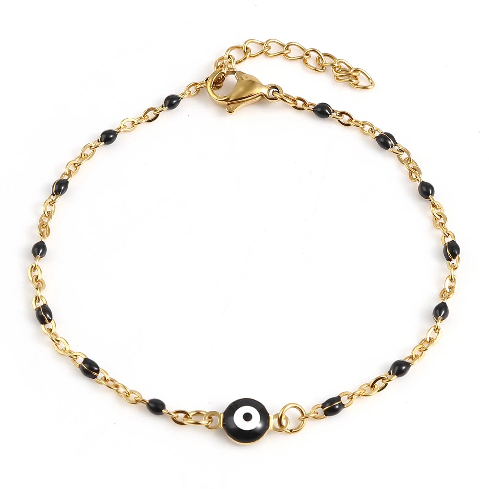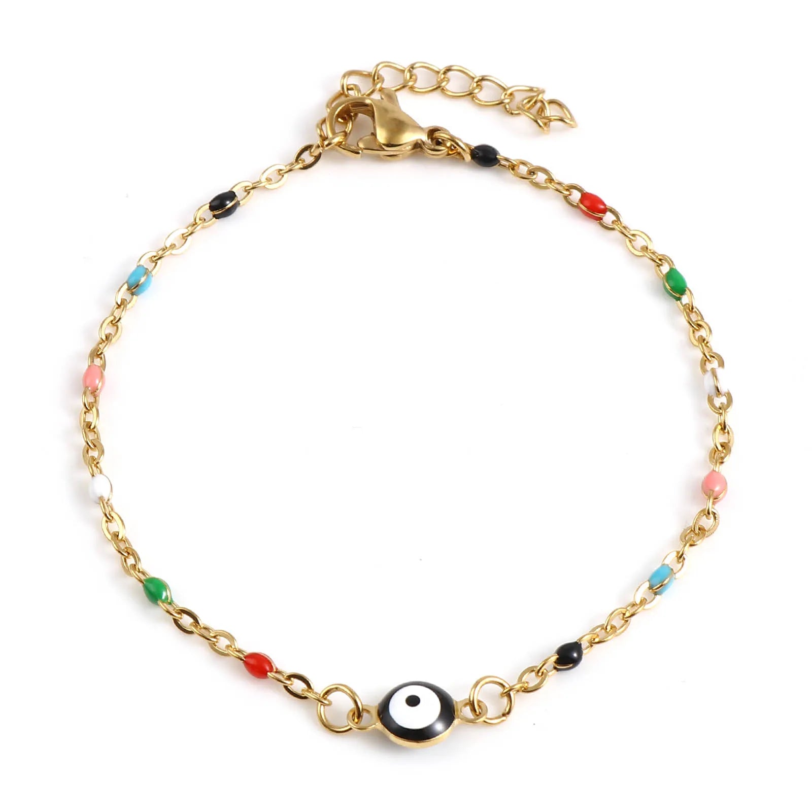 10 Colors! Colorful Gold Link Cable Chain Bracelets Gold Color Multicolor Round Evil Eye Enamel 17.5cm(6 7/8") long, 1 Piece