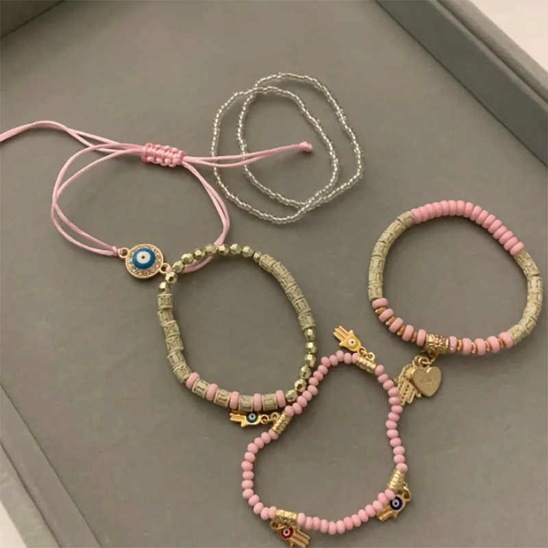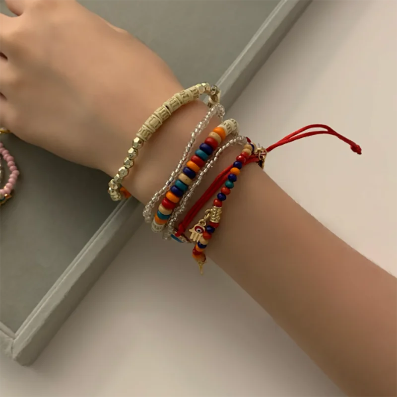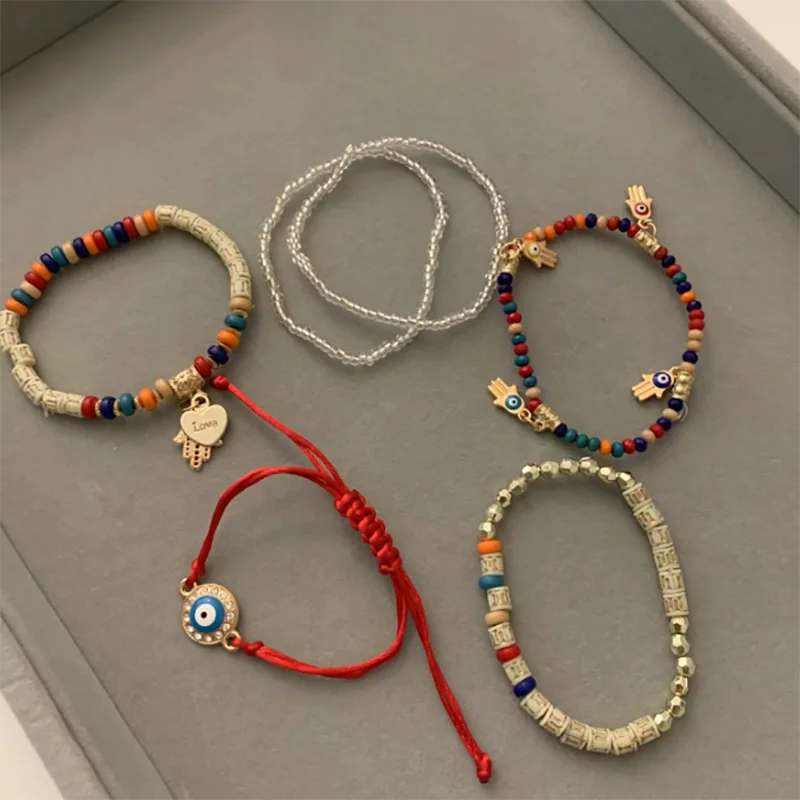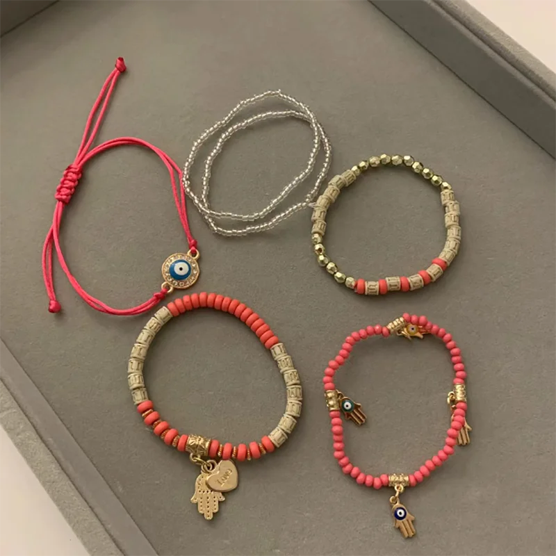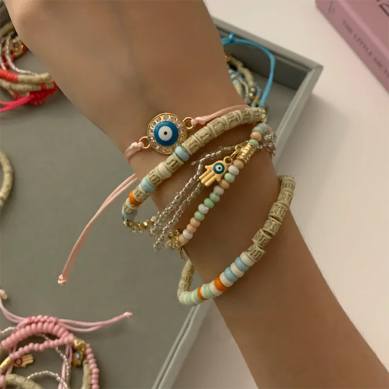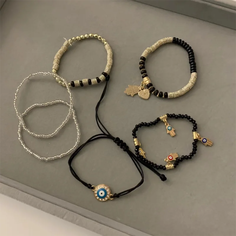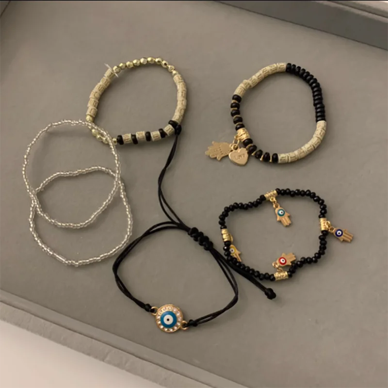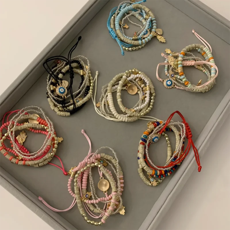 6 Styles! Multilayer Elastic Beaded Strand Bracelets Set For Women Evil Eye Beads Combination Handmade Bracelet
