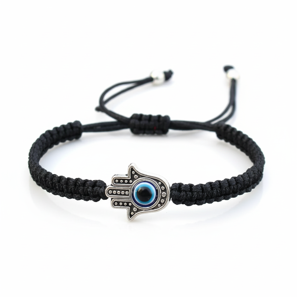 Vintage Handmade Woven Fatima Hamsa Hand Bracelet Men's Unisex Braided Turkish Evil Eye Bracelet