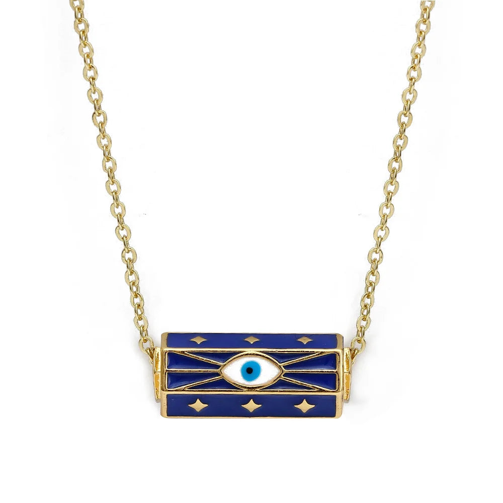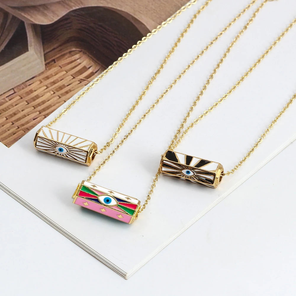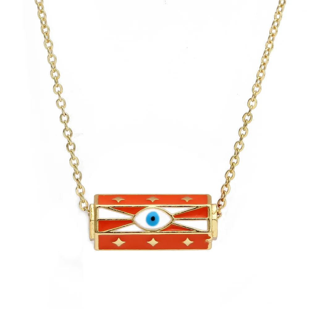 7 Colors! One Piece Enamel Copper Necklaces for Women Evil Eye Charms Gold