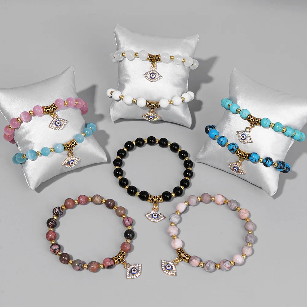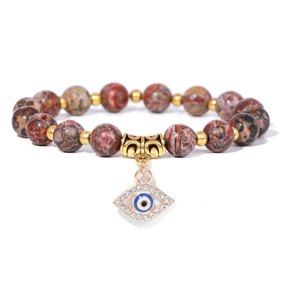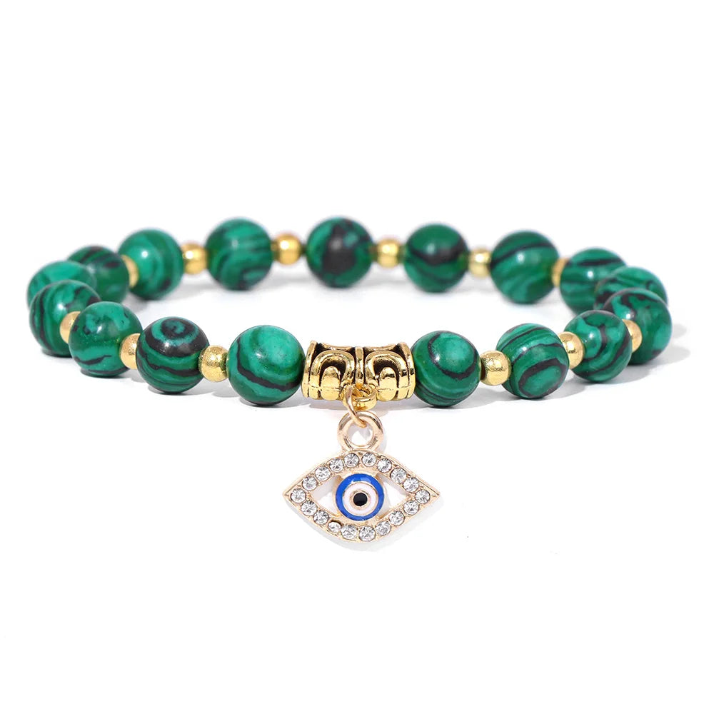 Women High-quality Beads Bracelet Natural Stone Gold Color Beads Bracelet Evil Eye Pendant Bracelets Women Healing Yoga Jewelry