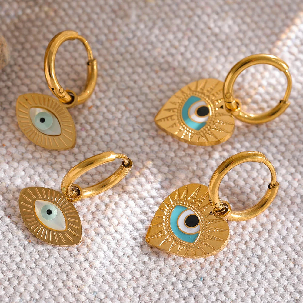 Choose from 2 available styles of Evil Eye Hoop Earrings - the perfect trendy fashion jewelry for women.